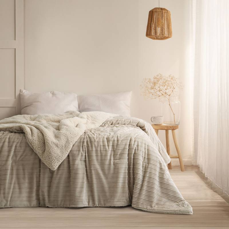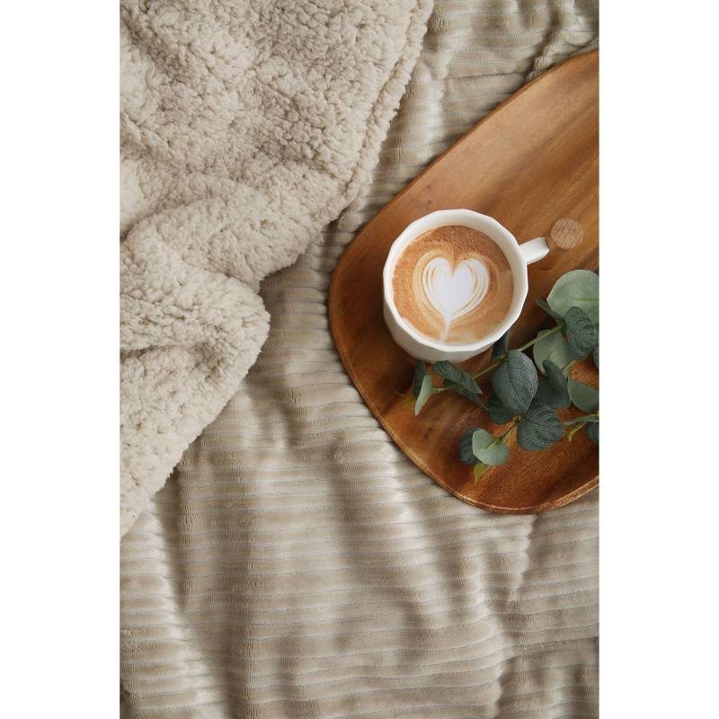 Edredón de microflannel jacquard con diseño de rayas horizontales y reverso de corderito