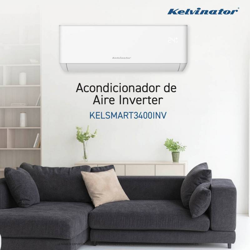 Aire acondicionado split frío/calor ideal para climatizar ambientes durante todo el año. Cuenta con tecnología Inverter, que optimiza el consumo de energía, mantiene una temperatura constante y reduce el ruido. Con una capacidad de 2900 frigorías, ofrece un rendimiento eficiente y una distribución uniforme del aire. Su diseño moderno y confiable garantiza confort, eficiencia y durabilidad, respaldado por la calidad Kelvinator.