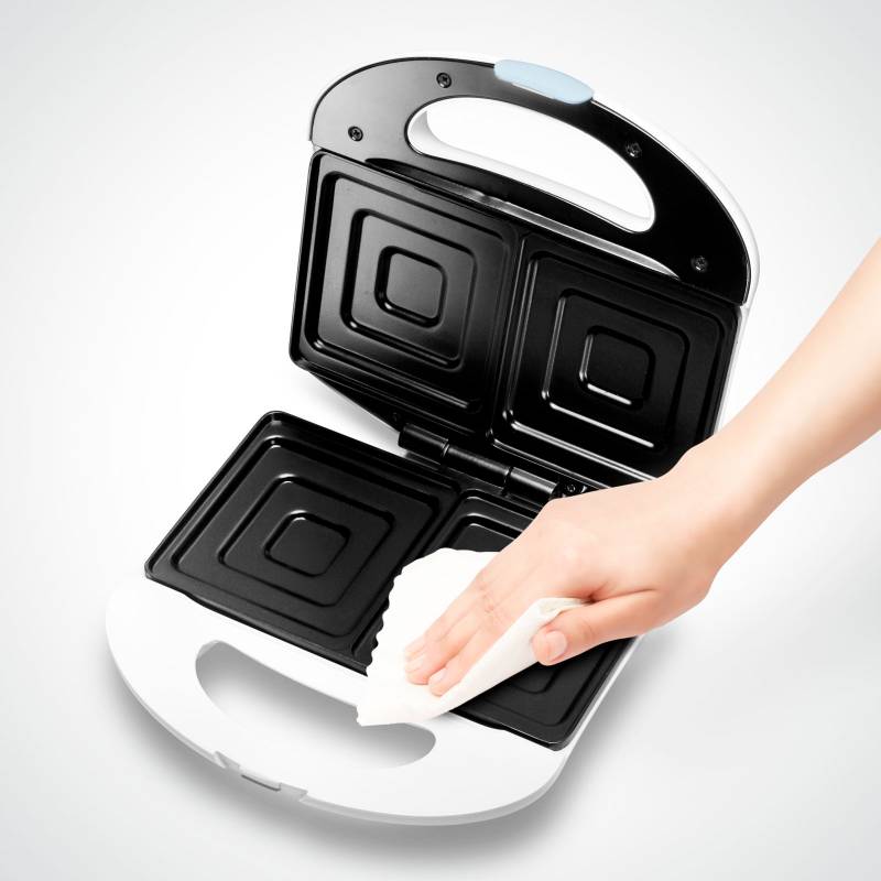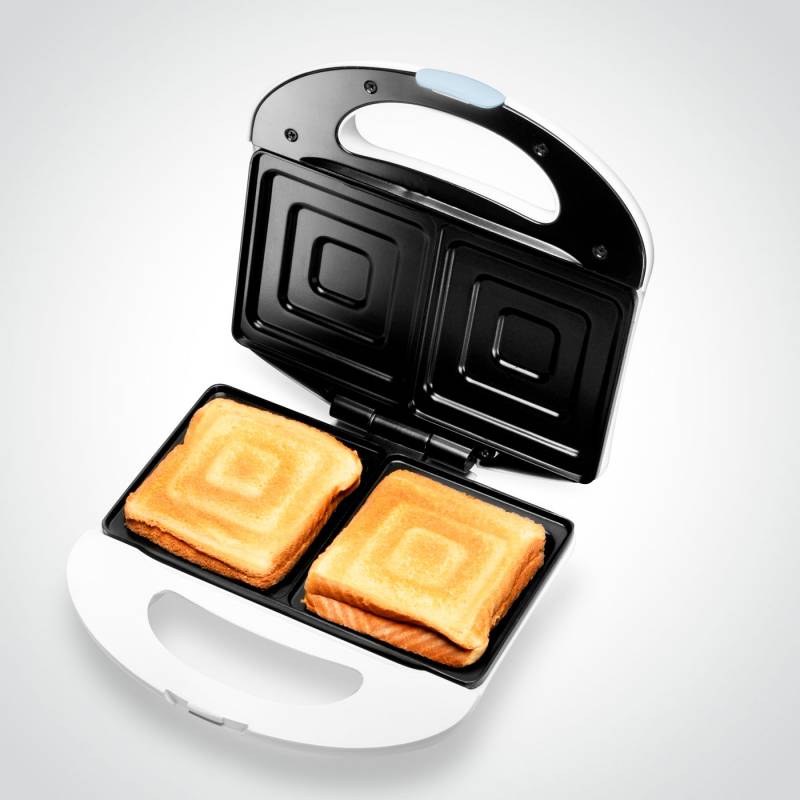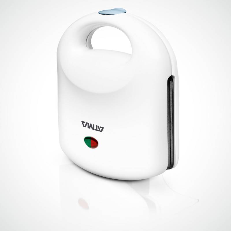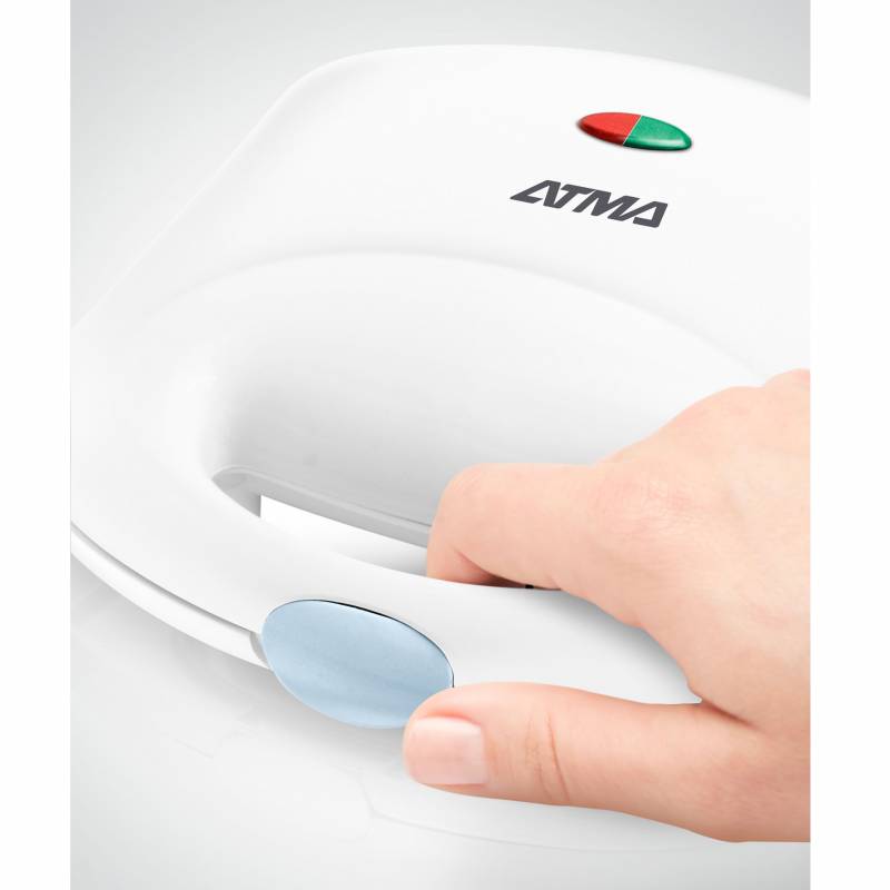 Sandwichera Atma de dos rebanadas, 700 watts de potencia e indicador luminoso.
