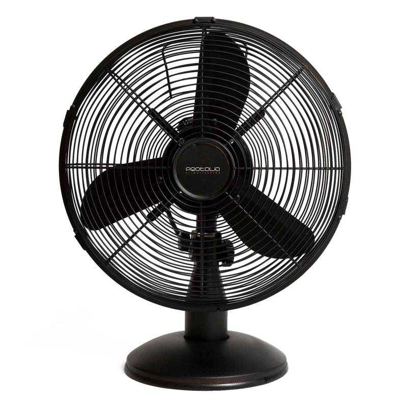 Ventilador de mesa Protalia 12" diseño retro con aspas metálicas de 60 watts de potencia, reja protectora metálica bitono negro mate.