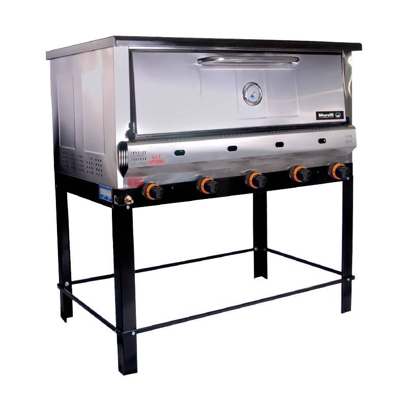 Sistema de gasificación, con picos industriales. Llama indirecta con mayor aislación térmica. Acero inoxidable. Boveda revestida con ladrillos refractarios. Cantidad de moldes: 12.