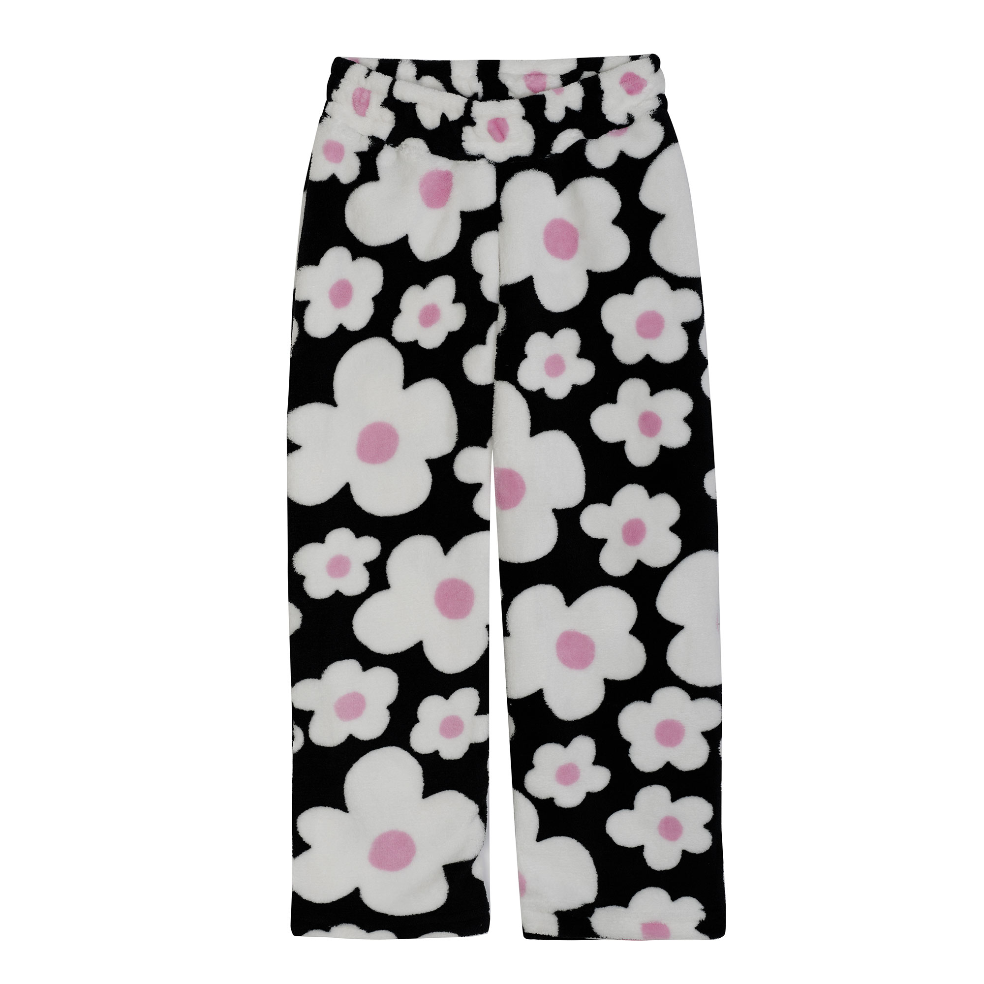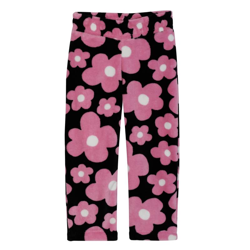 Pantalón niña peludito estampado, ideal para estar cómoda en casa o salir abrigada. Estampa full print de flores