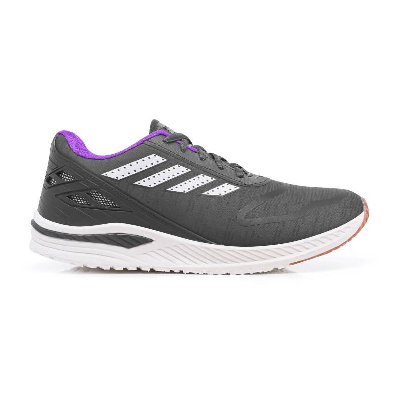 Zapatilla deportiva infantil color gris con cordones en mismo tono. Capellada con detalles blanco, al igual que la suela. Talón interior color violeta. Ultraliviana y cómoda para los más peques.