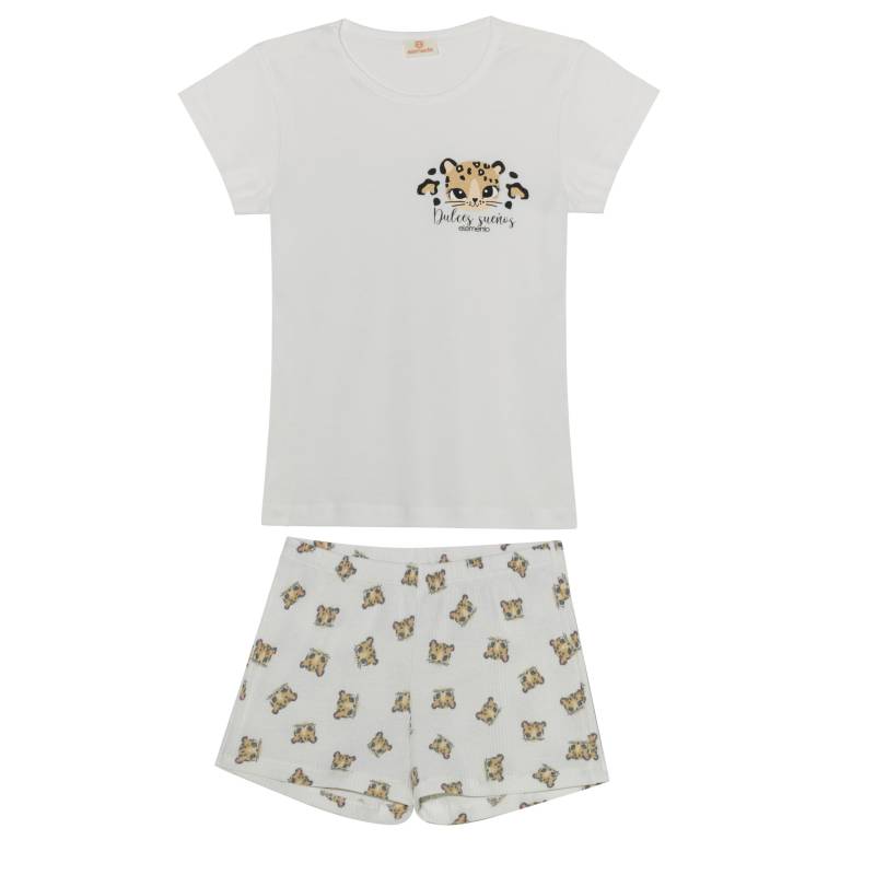 Pijama niña de remera manga corta con estampa y short full print, de algodón