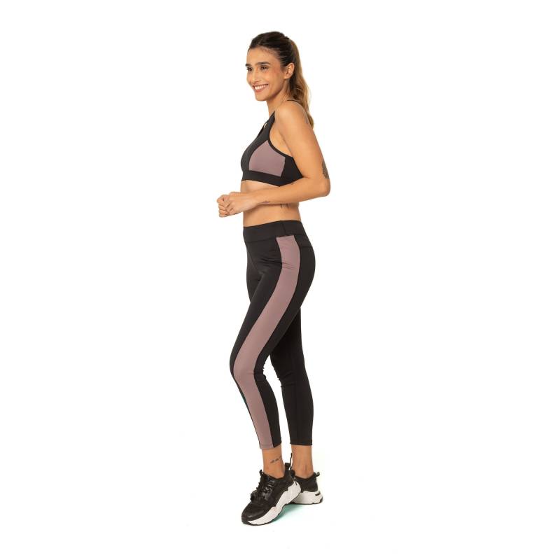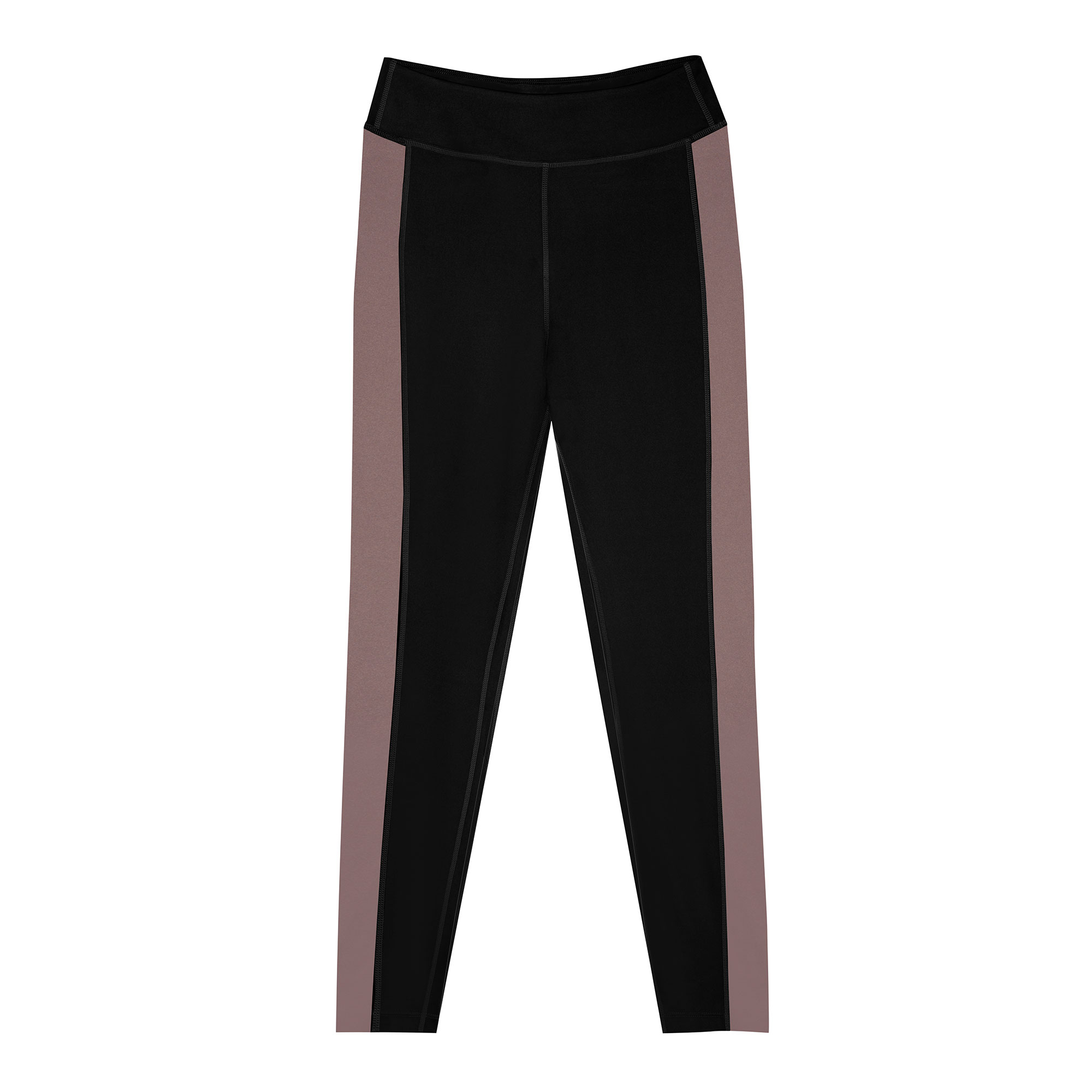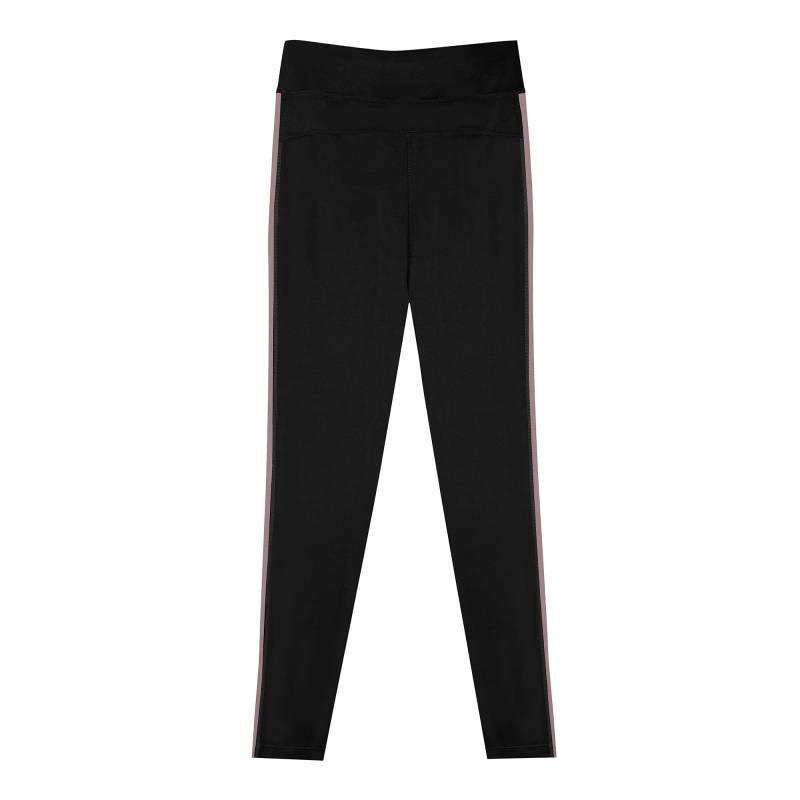 Calza larga lisa con franja en tono contratono en los laterales de la prenda. Confeccionada en tejido suave de microfibra para mayor elasticidad, calce tiro medio y con detalle de cintura ancha doble para mayor ajuste en la cintura.