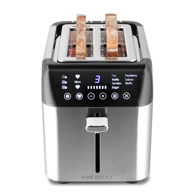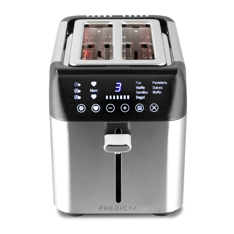 Tostadora de Acero Inoxidable Philco Predicta Dos Rebanadas 7 Programas Pantalla Touch Led Función Pan Fresco/Descongelar/Calentar/Cancelar Bandeja Colectora De Migas