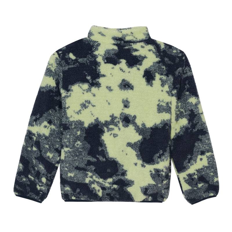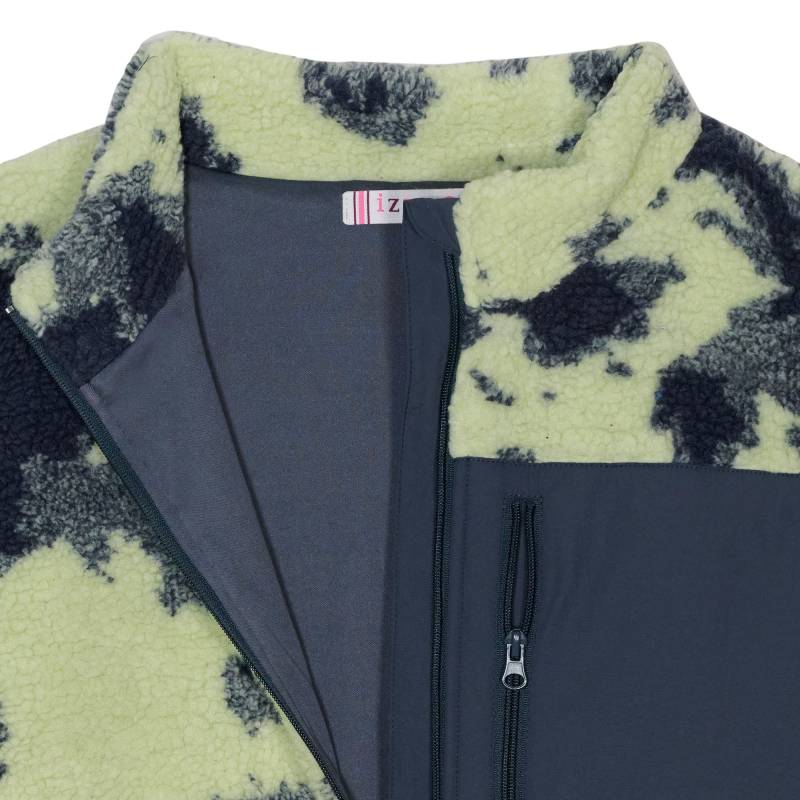 Campera infantil de sherpa batik color blanco y negro. Cierre entero, largo a la cadera, con bolsillo en frente con cierre y laterales. Cuello alto.