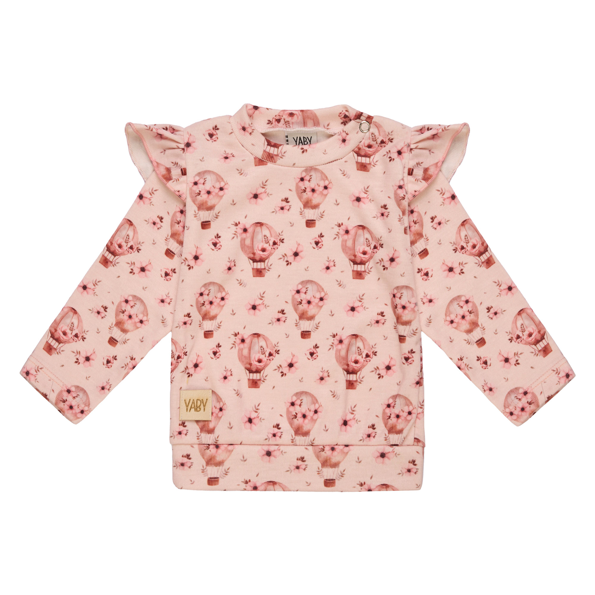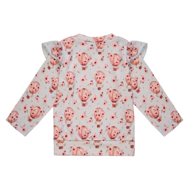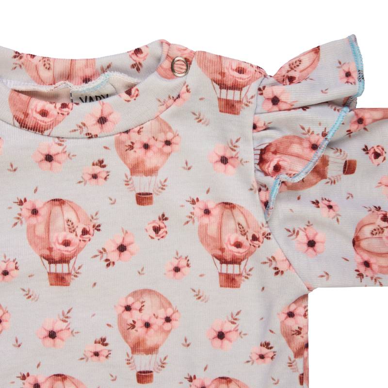 Buzo de beba con volado en manga confeccionado en lanilla sublimada. Estampa de globos
