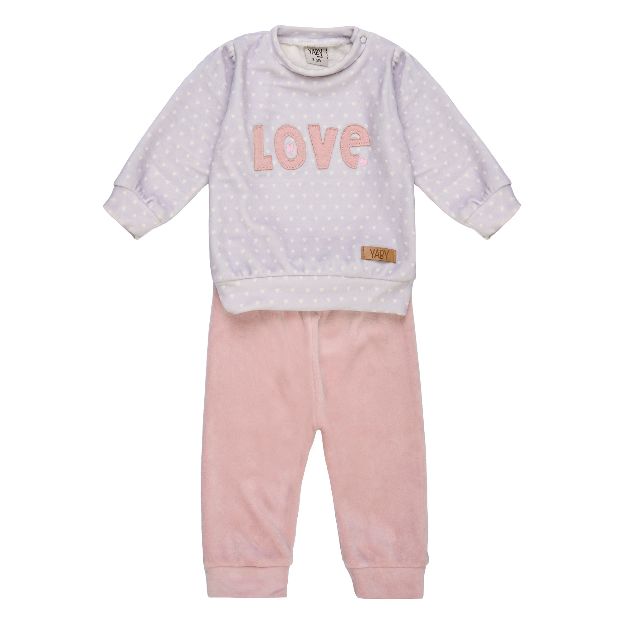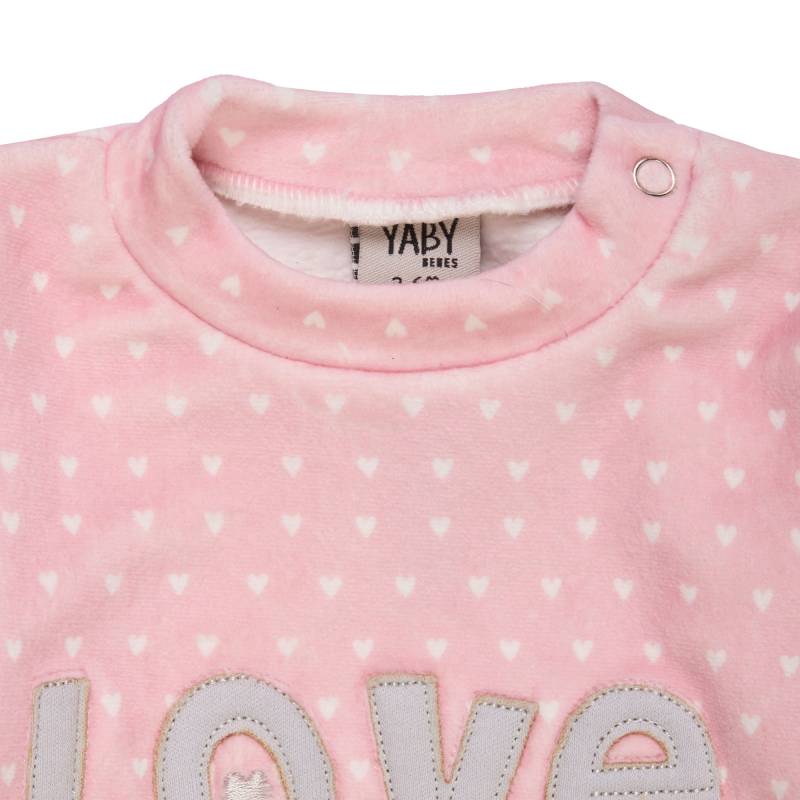 Conjunto beba buzo bordado love y pantalón de plush liso. Color rosa