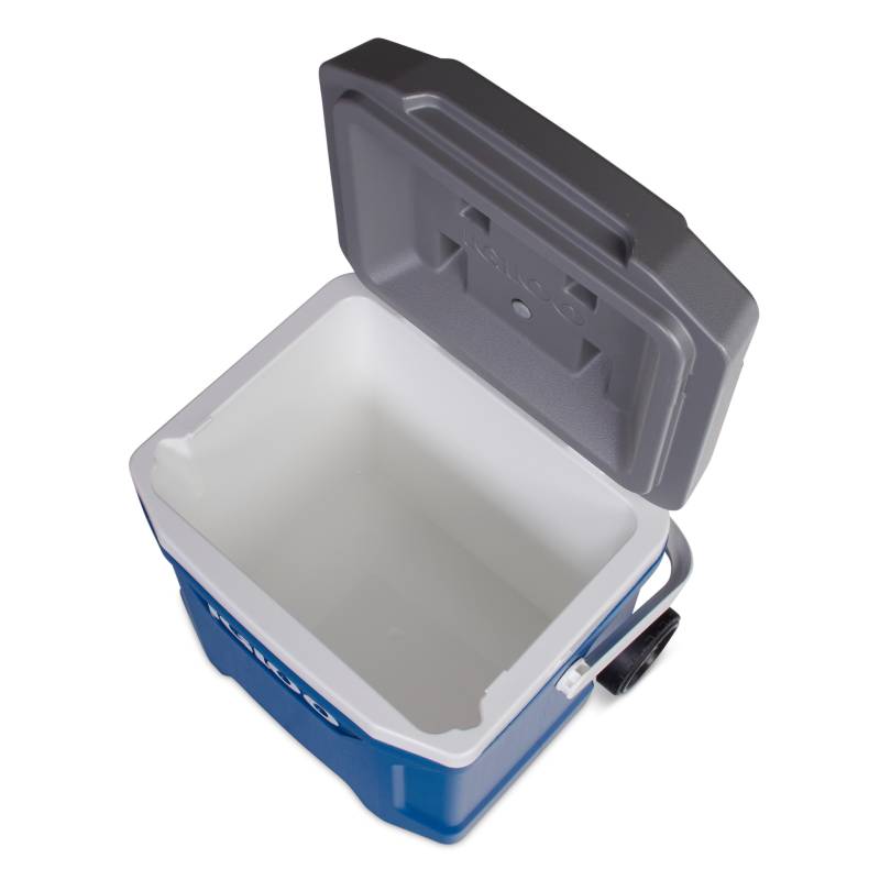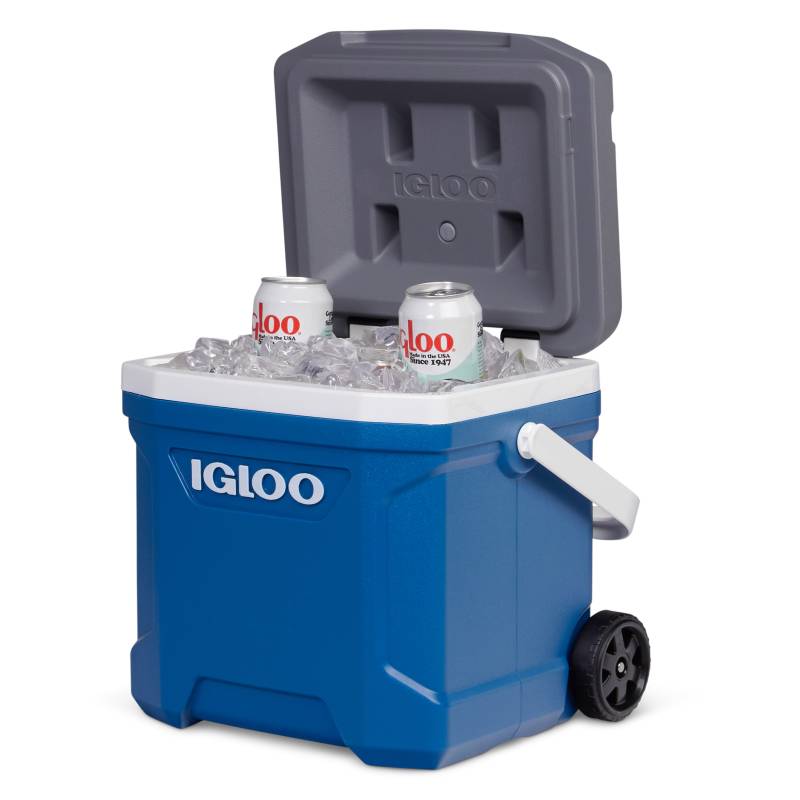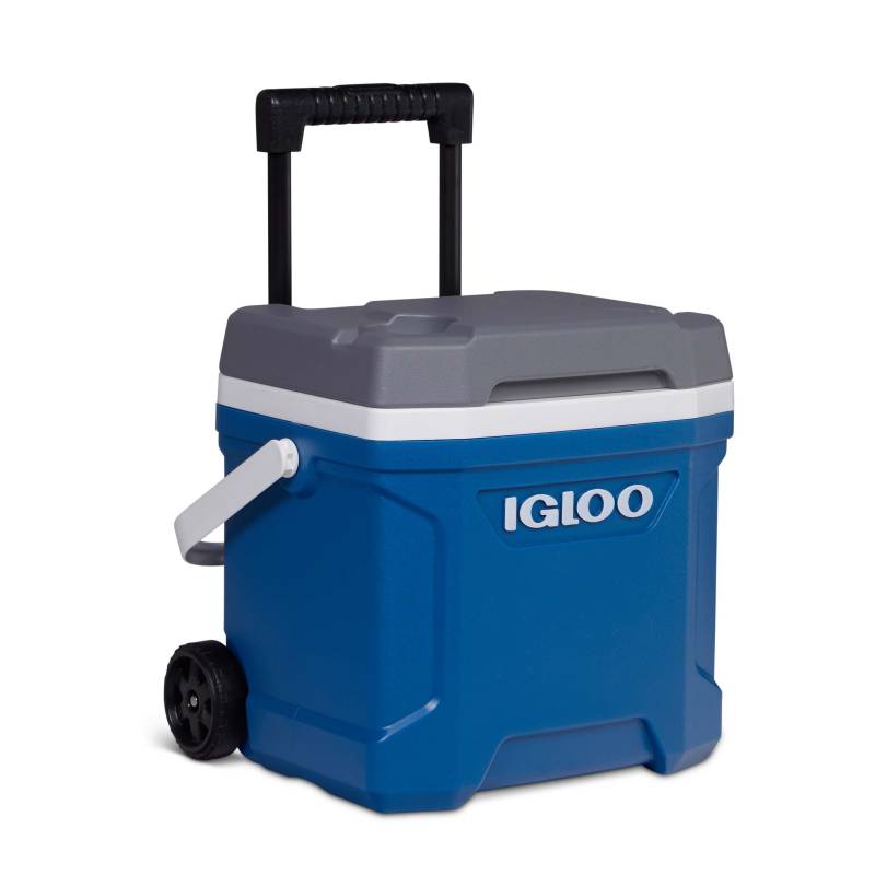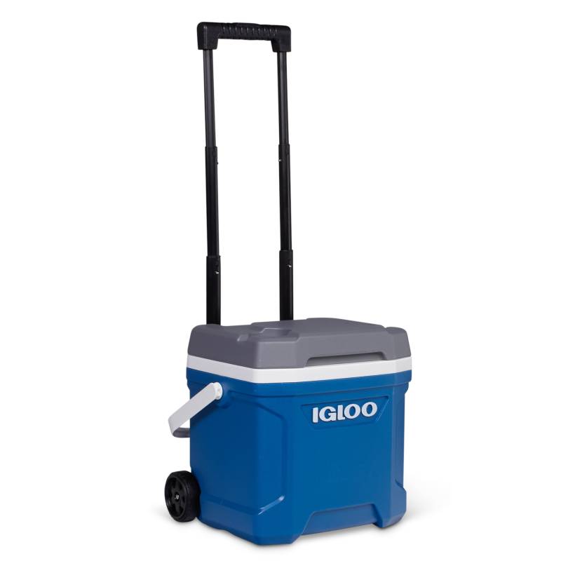 Conservadora Igloo Latitude 16 Roller ( 15.1 LTS ) 34825 Azul Capacidad: 16 Qt (aproximadamente 15 litros) Ruedas: Sí, para un fácil transporte. Color: Rojo vibrante. Material: Construido con material duradero y de alta calidad. Número de Asas: 3 asas (incluyendo un asa telescópica y asas de moldeado). Mango telescópico: Se puede bloquear y es de diseño ajustable, lo que permite empujar o tirar del enfriador con facilidad. Asas laterales: Manijas de moldeado que facilitan el agarre. Asa adicional: Ideal para transportar de manera sencilla, permitiendo llevar el enfriador con una mano al subir gradas o escaleras. Dos portavasos con drenaje incorporado en la tapa para mayor comodidad. Tecnología Cool Riser: Diseño elevado que mejora el rendimiento de refrigeración. Aislamiento ecológico: Espuma THERMECOOL, un material respetuoso con el medio ambiente que mantiene tus bebidas frías por más tiempo