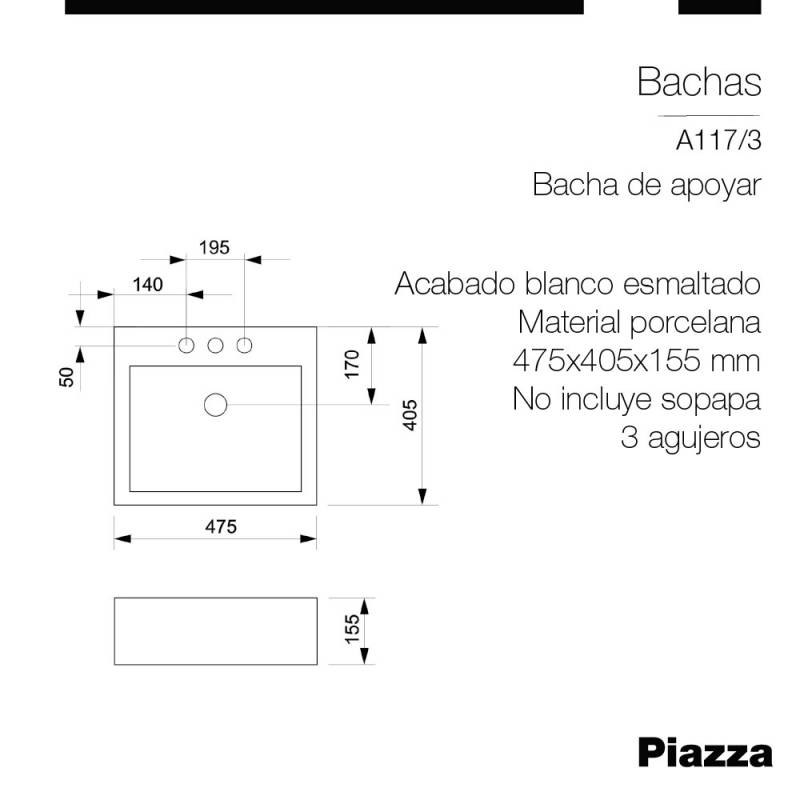 Bacha Apoyo Cuadrada A1173 3 Agujeros Piazza Lavatorio Pileta (A117/3) Innovación en griferías de alta calidad, diseño y tecnología