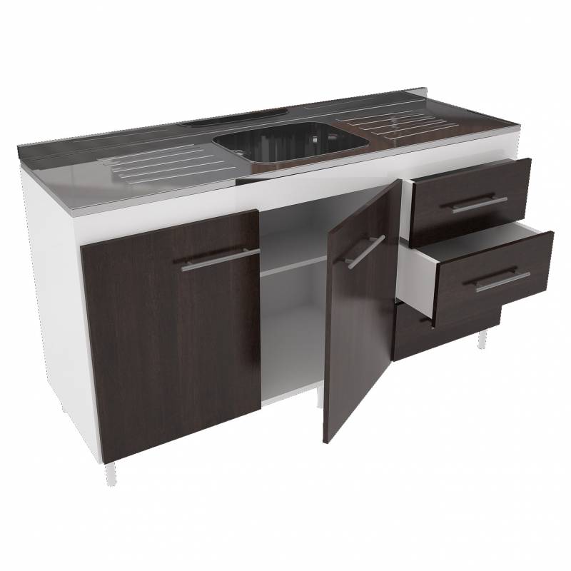 Bajo mesada con 3 cajones, 2 puertas y 1 estante.