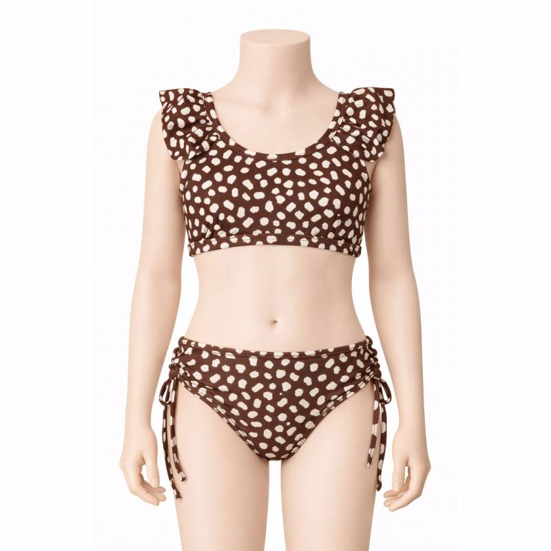 Conjunto de baño infantil de dos piezas, ideal para disfrutar del verano con total comodidad. Confeccionado en tejido suave, elástico y de secado rápido que se adapta al movimiento. La parte superior con volados aporta un detalle delicado y moderno.