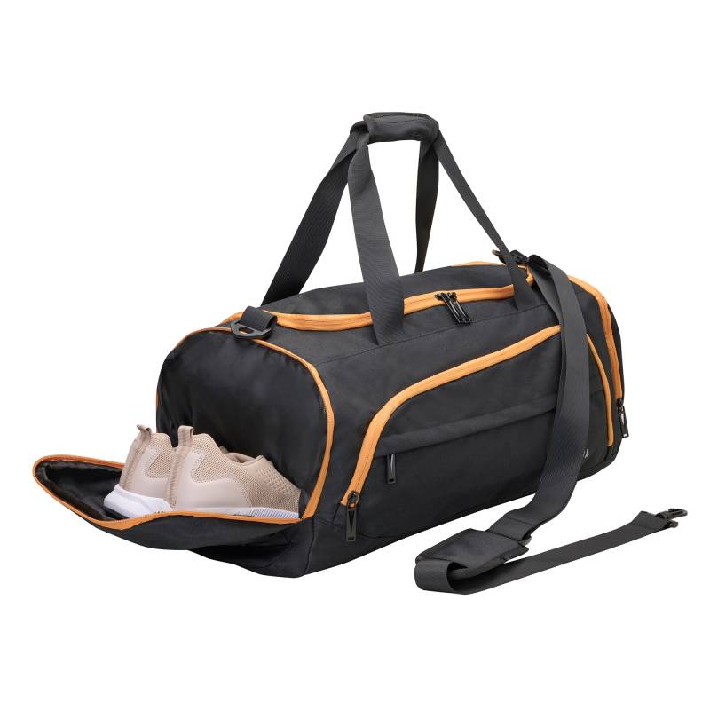 Bolso deportivo de diseño moderno liviano, práctico y funcional, ideal para gimnasio, viajes cortos o uso diario. Fabricado en resistente poliéster, cuenta con amplio compartimento principal y manijas dobles para mayor comodidad