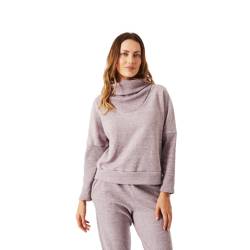 Buzo de mujer de frisa snow. Tiene cuello alto tipo polera volcado y puños de ribb.