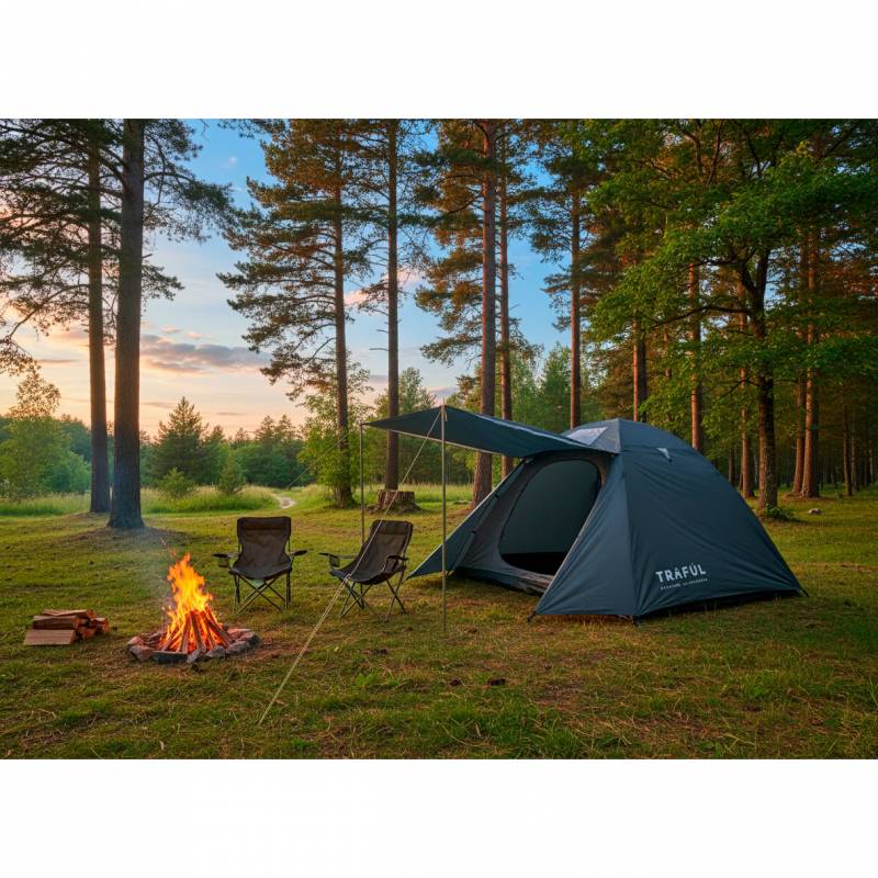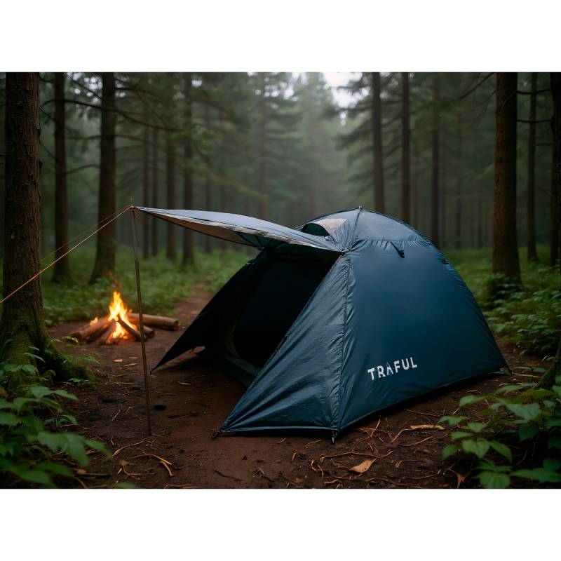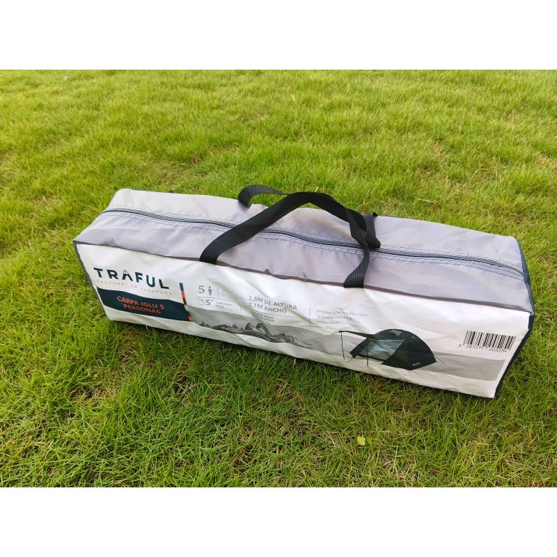 Carpa 5 personas, estilo domo, con exterior aluminizado, alero de ingreso. Columna de agua 800 mm