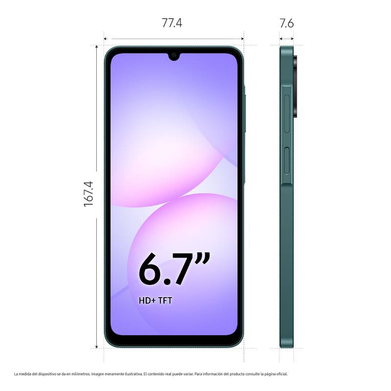 El Galaxy A07 es un smartphone accesible con pantalla de 6.5", batería de 5000 mAh y Android 14. Ideal para uso diario, ofrece cámara dual, reconocimiento facial y expansión de memoria hasta 1 TB. Es perfecto para quienes buscan funcionalidad y autonomía a buen precio.