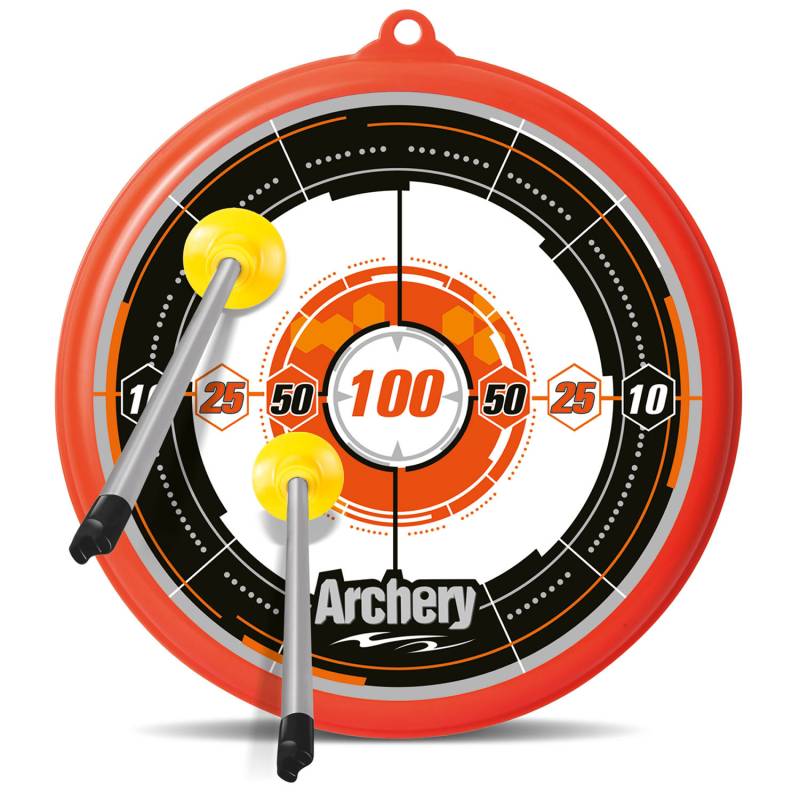 Arco con 3 flechas de ventosa. Incluye: 1 soporte para arco y 1 blanco para puerta.