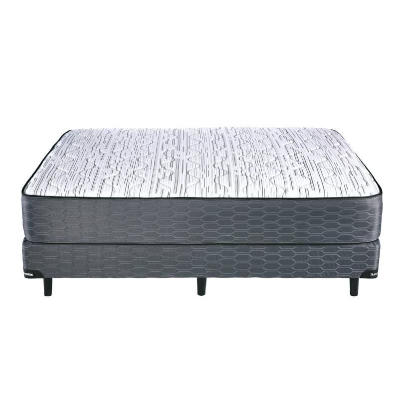 Colchón de resortes independientes de máxima calidad, que gracias a su sistema que no transmite el movimiento, asegura un descanso reparador sin interrupciones. Máximo confort, suavidad y elegancia. El somier está realizado en madera estacionada cubierta con manta de espuma de alta densidad y tela antideslizante. Está tapizado en tela Jackard, totalmente matelasseado Resortes independientes Su estructura de resortes enfundados individualmente reduce al mínimo la transferencia de movimiento, evitando que el cuerpo más pesado afecte al otro arrastrándolo hacia el centro del colchón. Además, permiten que el colchón se adapte perfectamente a la anatomía del cuerpo. Tejido de punto Su exterior es de Tejido de punto totalmente matelaseado. Es una tela de gran calidad, muy suave, fresca y flexible que por las propiedades naturales de sus componentes se funde fácilmente con el perfil de cada cuerpo. Por su diseño, este colchón no necesita ser rotado