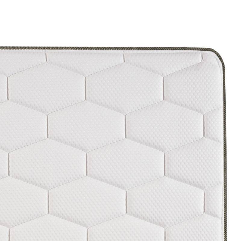 Estructura interna: Cuenta con un sistema de resortes Bonnell, ideal para brindar un soporte firme y duradero. Incorpora espuma Eco Zoned, que favorece una mejor distribución del peso y un descanso más equilibrado. El marco perimetral de espuma refuerza los bordes, optimizando la estabilidad y prolongando la vida útil del colchón.