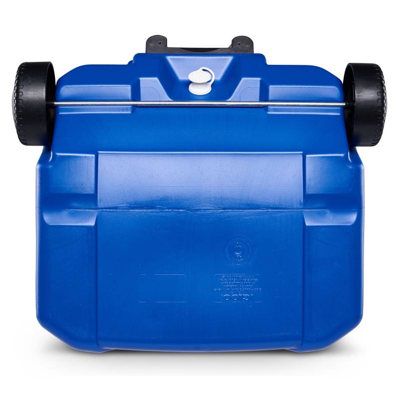 Conservadora Igloo ( 56.8 LTS ) 34493 Azul Asa telescópica de remolque reforzada y ruedas integradas duraderas ThermeCool: Aislante de poliuretano inyectado de alta densidad tanto en la base como en la tapa que aumenta la retención de frío. Cool Rising Technology que eleva la base para mejorar el rendimiento del frío. 2 asas integradas laterales -Ruedas fuertes y duraderas para el transporte. Puede mantener el hielo varios días. 4 portavasos integrados en la tapa.