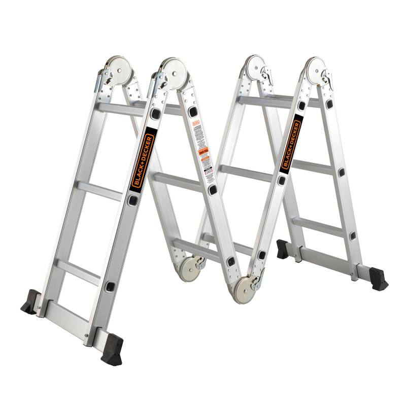 Escalera multifunción articulada con diseño 4x3. Longitud total de 3,5 metros. Espesor del material entre 1,2 y 1,5 mm. Capacidad de carga máxima de 150 kg. Ideal para uso doméstico y profesional.