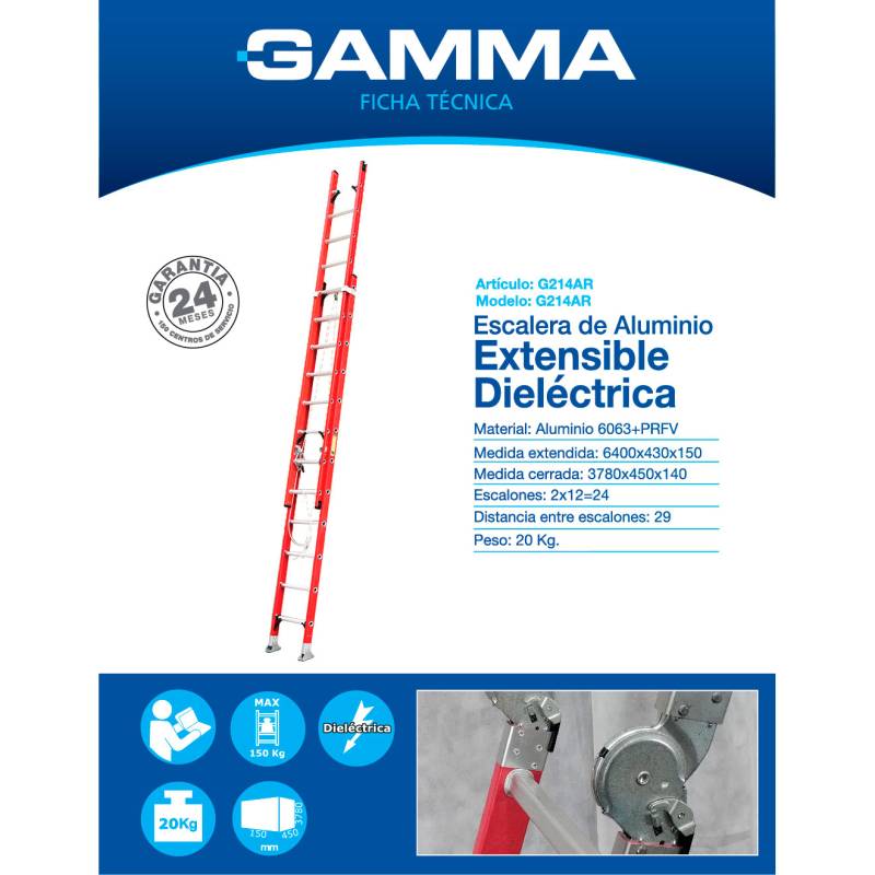 Escalera de Aluminio Gamma Extensible Dieléctrica 24 Escalones