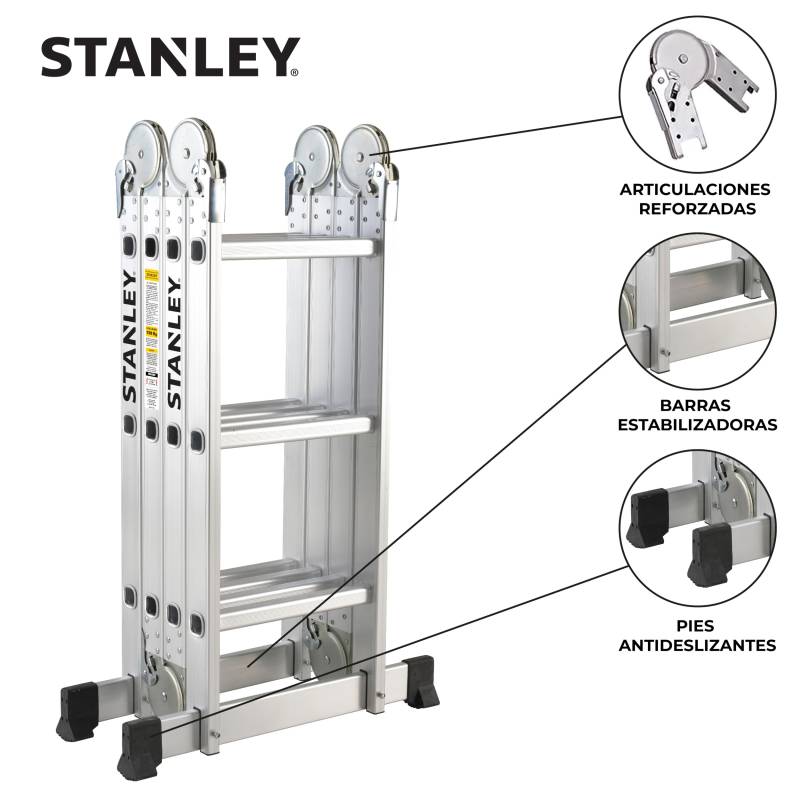 Escalera de Aluminio Stanley Articulada 4X3 + Plataforma