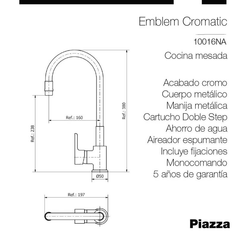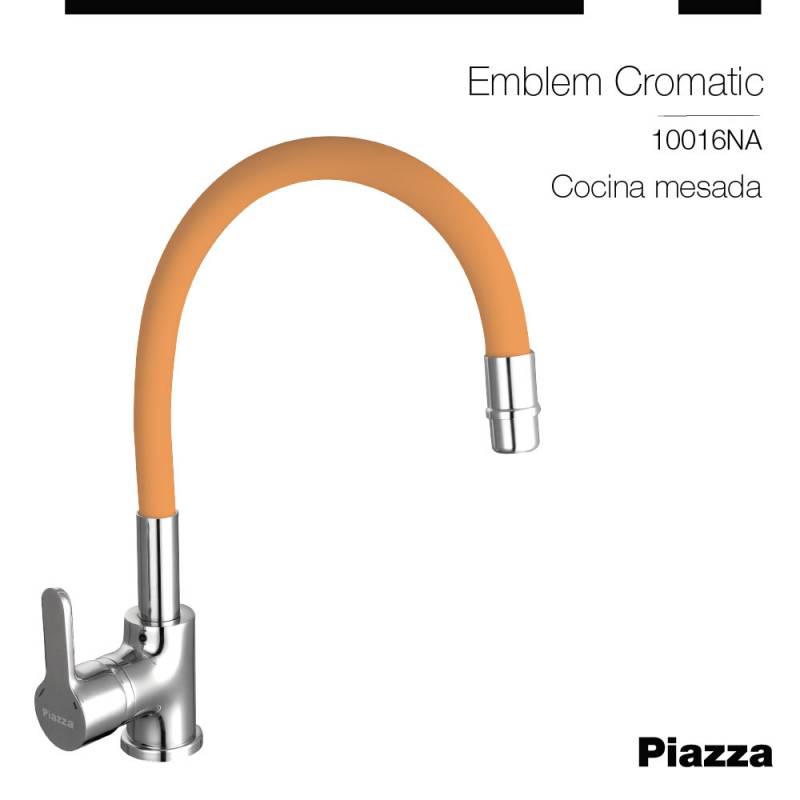 Grifería Gourmet Monocomando Piazza Color Cocina Emblem Flexible Articulada Mezcladora Rociador Naranja (10016BL) ¡Dale un toque de color a tu cocina! La nueva línea de productos Emblem Cromatic cuenta con manguera flexible y ofrece un diseño novedoso y atractivo que permite infinidad de usos y posiciones. -Marca: Piazza -Linea: Emblem -Manguera flexible mallado metálico articulado recubierto con resina plástica suave. Diseño exclusivo. Material de EPDM (Etileno Propileno Dieno). Apto para la conducción de líquidos para consumo humano. -Cuerpo de Latón Cromado Super Brillante. -Cierre cerámico "doble step" con media apertura o apertura completa, que te ayuda a regular el consumo de agua (hasta un 40%). Monocomando. -Pico giratorio a 360° con aireador -Color: Naranja -Mecanismos íntegramente metálicos -Material volante: Metálico -Tipo de cartucho: Ø 35 mm -Presión Mínima: 0,4 kg/cm2 -Fácil Instalación: Incluye flexibles G1/2'x14h de acero mallado y fijaciones para instalación -Garantía: 5 años Oficial de Fábrica -Apto para calefón y/o termotanque Medidas -Profundidad: 27 cm -Alto: 30 cm -Alto del pico a la base: 20 cm -Medida horizontal y vertical del comando: 10 cm ¡SUSTENTABILIDAD! - AGUA ES VIDA! Desde Piazza cuidamos el medioambiente con distintos protocolos presentes en nuestros productos. > Cartucho Doble Step > Lavatorios & Cocinas Se utiliza en los Monocomandos y cuenta con 2 posiciones en la apertura al paso de agua lo que permite hasta un 45% de ahorro de agua. > Flexible Monocomando > Los flexibles de Monocomando están fabricados con juntas y tubo interior en caucho EPDM. Además cumplen con todas las normativas, certificaciones y controles de calidad otorgando una garantía de producto de excelencia.