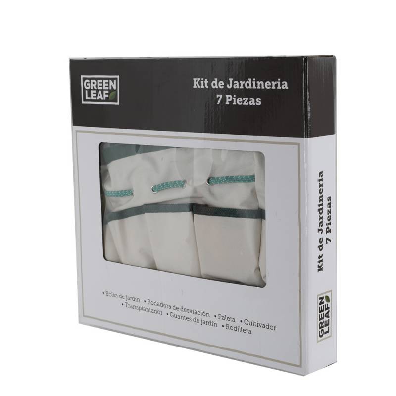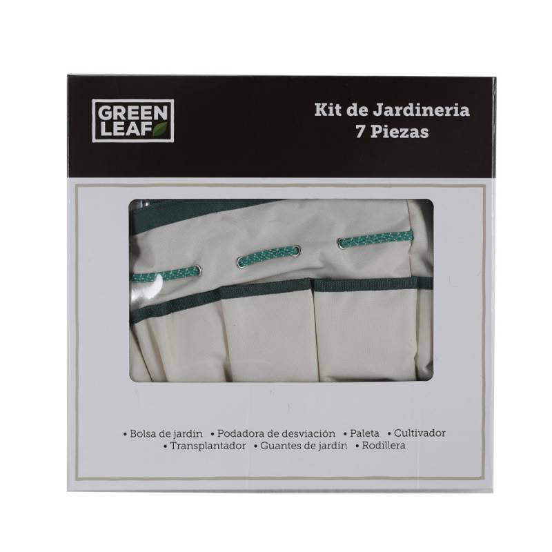 Juego de jardinería de 7 piezas, de uso generalizado en trabajos de jardinería: paleta de aluminio, trasplantador, rastrillo con mango de plástico, guantes, bolsa, rodillera. Un juego de herramientas de jardinería bonito y duradero.