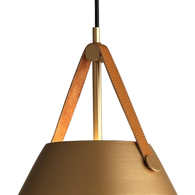 Lámpara Colgante Lett Cobre con Aplique de Cuero