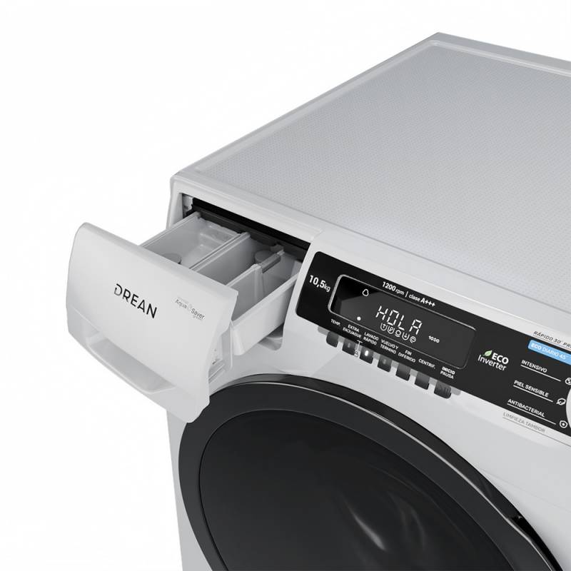 Lavarropas de carga frontal 10,5 kg con Motor Inverter y 1.200 rpm. Ofrece eficiencia energética A+++, tecnología AquaSense y Autobalance (AI) para un lavado más preciso. Color Blanco.