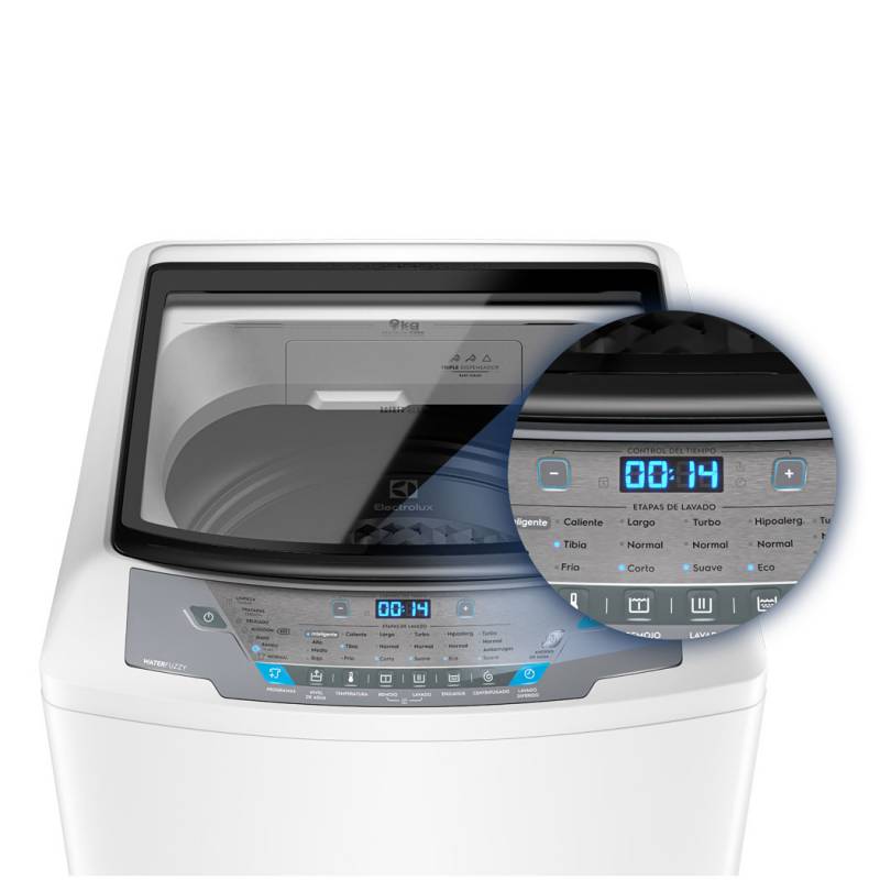 El nuevo lavarropas automático Electrolux Premium Care ELAC309W con 9kg de capacidad. Brinda el mejor cuidado para tus prendas, con un consumo eficiente de agua. Este modelo, llega con la función de Ahorro de agua que te permite ahorrar hasta un 40%¹ de agua por ciclo de lavado, para un rendimiento superior, con un menor consumo de agua. Confiá en la tecnología Water Fuzzy de tu lavarropas, para un consumo eficiente de agua durante tus lavados. Cuenta con 12 opciones inteligentes que ajustan automáticamente la cantidad de agua en función del peso de las prendas en el tambor, optimizando el consumo y el tiempo de lavado. Además, tiene clasificación de Eficiencia Energética A+, para que disfrutes de tus prendas siempre limpias, consumiendo la energía apropiada. Tu lavarropas automático Electrolux estará limpio e higienizado en cada ciclo de lavado gracias a su tecnología Nano cobre que elimina e inhibe hasta el 99%² de las bacterias que se acumulan en el filtro. Su sistema de lavado con Power dilution facilita la dilución del detergente y el suavizante, ayudando a eliminar las manchas más difíciles sin dejar de cuidar tus prendas. Mayor seguridad en el uso, gracias a su Puerta Soft close con cierre suave de tapa, fabricada en vidrio templado, que además de ser muy resistente, facilita la visión del interior del lavarropas. Este lavarropas cuenta con un programa especial para el lavado de frazadas y con un programa adicional de enjuague hipoalergénico, ideal para pieles sensibles. Mayor cuidado para vos y para tu familia. Además, dispone de tres niveles de temperatura del agua, para que puedas elegir la temperatura que mejor se ajuste tu necesidad y al nivel de suciedad de las telas. Este lavarropas cuenta con 10 años de garantía en el motor³. Garantía y respaldo de Electrolux. ¹Comparado con un ciclo de lavado convencional con el mismo producto y bajo las mismas condiciones de lavado. ²Estudio certificado por el Instituto de Biología de la Pontificia Universidad Católica de Valparaíso. Considerando el porcentaje de reducción es superior al 99% desde las 8 horas, cuando se observa la actividad antimicrobiana para E. coli DH5a, y el porcentaje de reducción de 77,77% desde las 24 horas cuando se observa la actividad antimicrobiana para S. aureus MRSA. ³10 años de garantía sobre el motor desde la fecha en la que el consumidor haya recibido el producto. Garantía sujeta al cumplimiento de las condiciones de uso del producto y demás limitaciones establecidas en el manual de usuario.