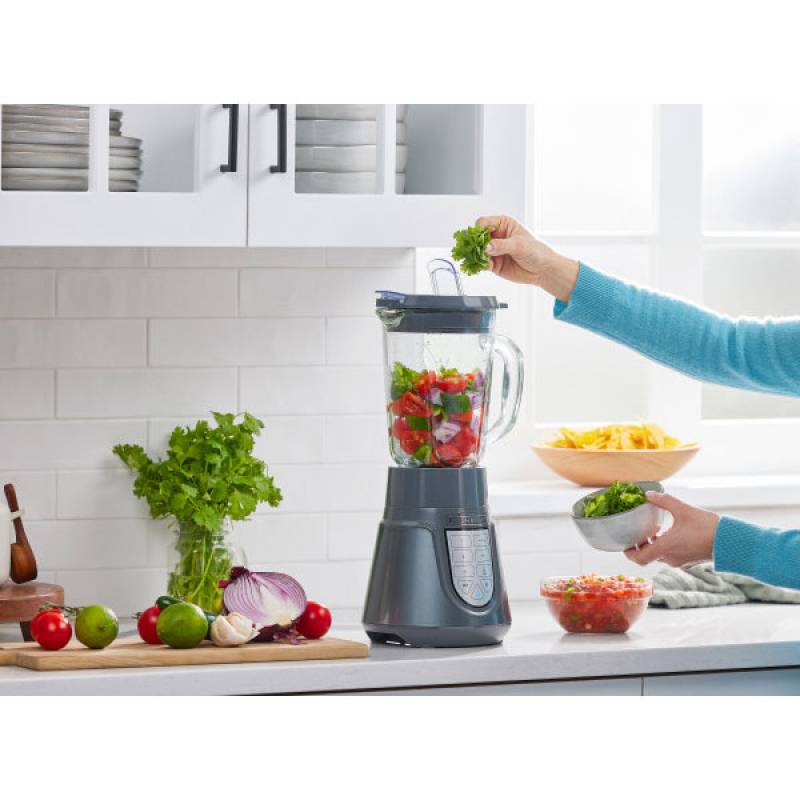 1000 watts de potencia para triturar hielo Cuchillas serradas de 6 puntas Licúa hasta 30% mas rápido Vaso personal de 24oz Jarra de vidrio de 1.5 litros Licuado silencioso 3 velocidades + 4 funciones automáticas Botón de pulso Piezas aptas para el lavavajillas Pies de goma antideslizante Guardacable Dispositivo de bisagra Boquilla vertedora integrada. Tecnología Silenciosa, nuestra licuadora más silenciosa, menos ruido más potenica. 1000 watts de potencia para triturar hielo Cuchillas serradas de 6 puntas Licúa hasta 30% mas rápido Vaso personal de 24oz Jarra de vidrio PerfectPour™ de 1.5 litros 3 velocidades + 4 funciones automáticas Botón de pulso Boquilla vertidora integrada Dispositivo de bisagra Piezas aptas para el lavavajillas Pies de goma antideslizante Guardacable