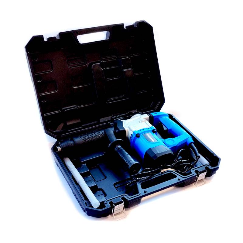 El martillo demoledor MDE-956 de 1500 W es una herramienta robusta y eficiente, diseñada para tareas intensivas de demolición y perforación en concreto. Con una potencia de 1400 W, este martillo ofrece una impresionante fuerza de impacto de 20 Joules y una tasa de 3600 golpes por minuto, permitiendo un rendimiento potente y efectivo en materiales resistentes. Su sistema de encastre HEX garantiza una fijación firme y segura de los accesorios, optimizando la transmisión de la fuerza de impacto. Ideal para entornos de construcción exigentes, su diseño compacto y ergonómico reduce la fatiga del operador, facilitando el uso prolongado y proporcionando un mejor control en cada operación. Con su cable de alimentación de 2 metros, ofrece una amplia maniobrabilidad en distintas posiciones de trabajo, asegurando comodidad y eficiencia en cada proyecto.