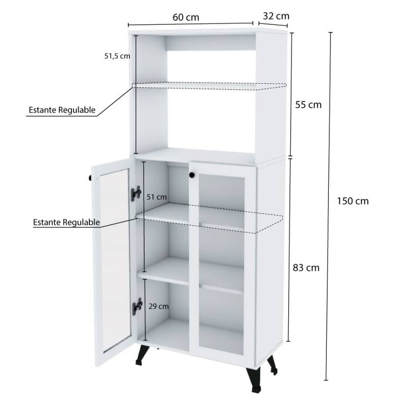 Un mueble organizador pensado para que todo quede acomodado puertas a adentro. En su interior encontras estantes regulables para ubicarlos según tu necesidad. Guarda todo lo que necesites y tené todo organizado en un mismo espacio. Ideal para el living, sala de estar o cocina.