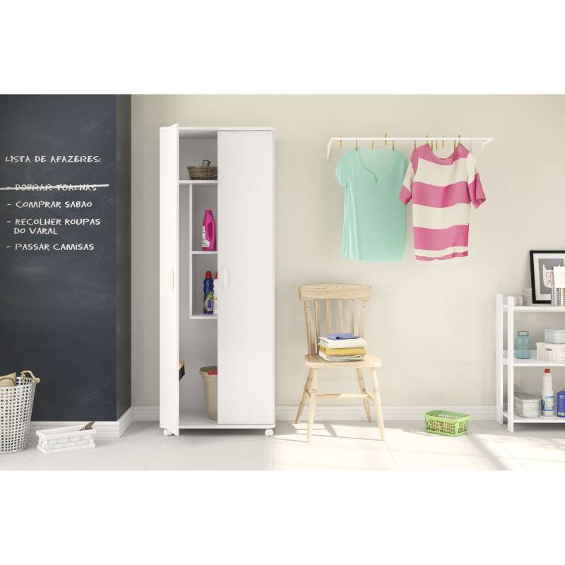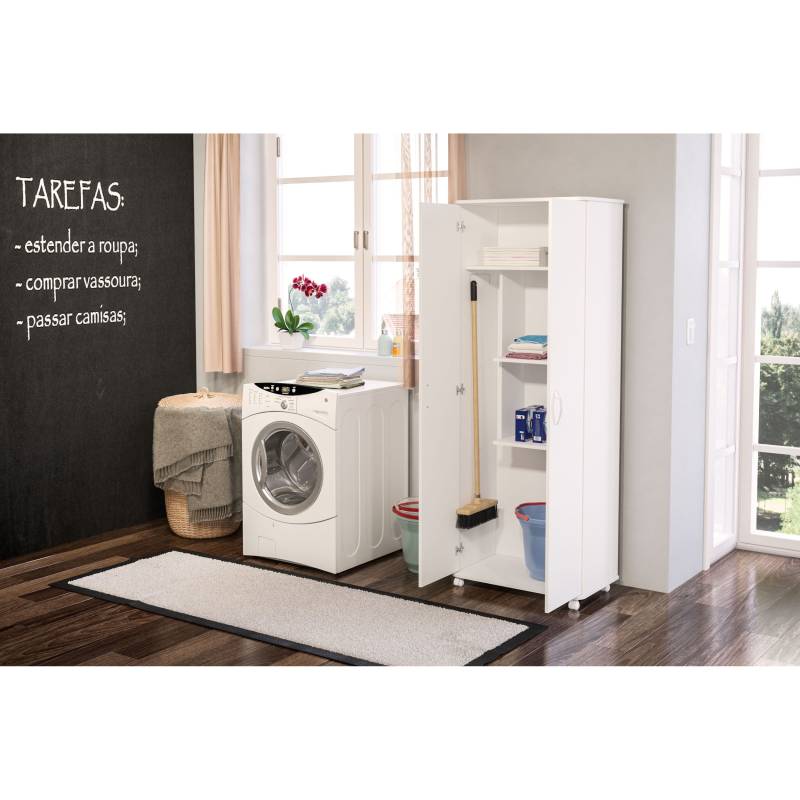 El Armario Organizador Amapá de Politorno es el aliado ideal para quien busca más espacio y organización en el área de lavandería. De mayor tamaño y especialmente diseñado para ambientes que exigen practicidad, aporta funcionalidad sin renunciar al estilo. Su diseño moderno y discreto permite que se integre perfectamente en la decoración, a la vez que acomoda todo lo necesario de forma organizada y accesible. Una solución inteligente para mantener la habitación limpia, funcional y con todo en su sitio.