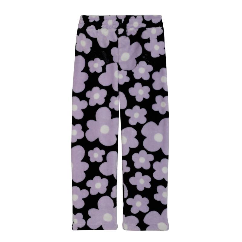 Pantalón niña peludito estampado, ideal para estar cómoda en casa o salir abrigada. Estampa full print de flores