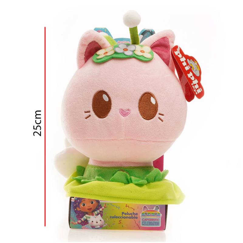 Este peluche pertenece a un grupo de 6 peluches coleccionables, viene en su caja de colección, tiene detalles bordados en sus ojos y nariz. Simula estas disfrazado de hada, tiene dos pompones que hacen de antenas y cuenta con bolados que son su vestido