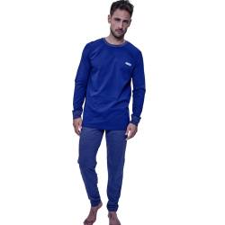 Pijama de hombre con remera con logo estampado combinada con el pantaóln. 100% Algodón.