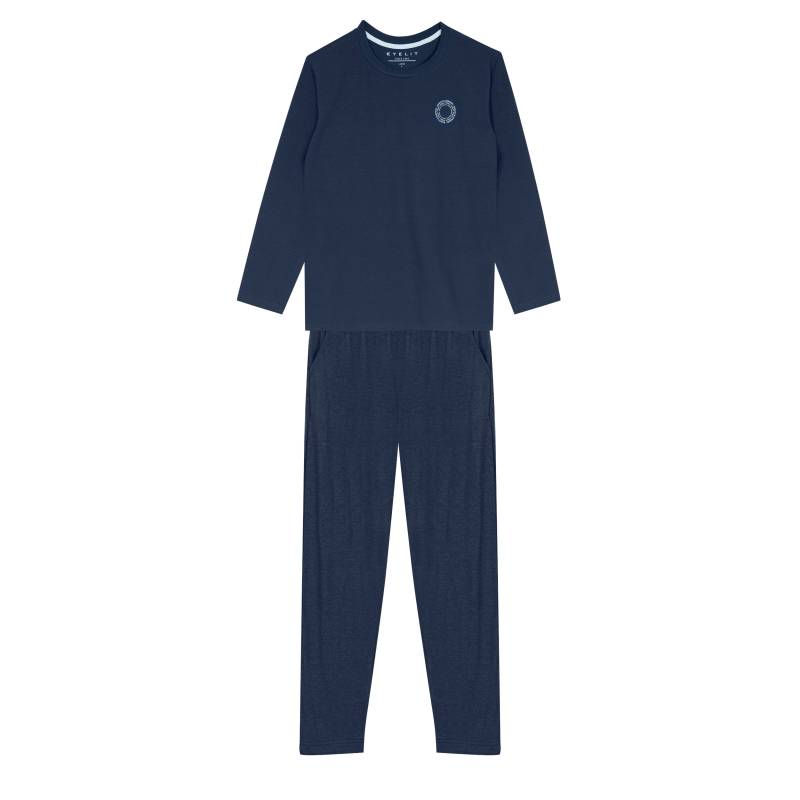 Con estilo ideal para las noches de invierno. Confeccionado en algodón y elastano garantizando la suavidad que el hombre busca para estar cómodo y lograr un buen descanso. Remera manga larga lisa con cuello redondo, detalles de estampa circular , y vivos en puño y cuello, pantalón largo liso con bolsillos laterales.