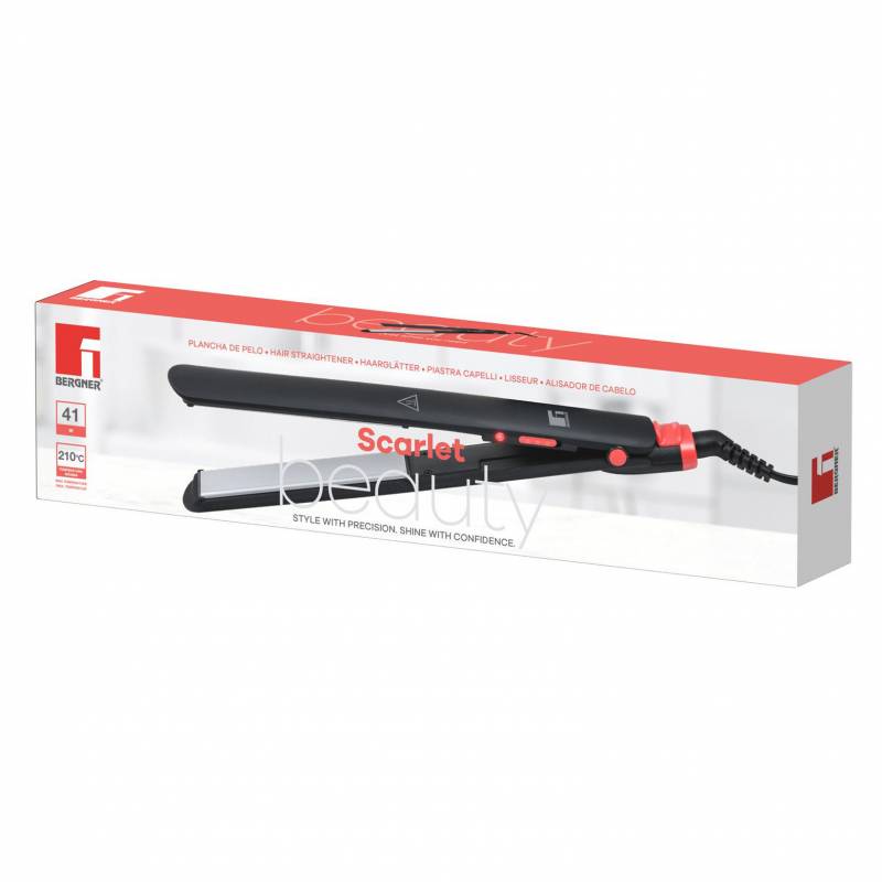 La plancha de pelo Scarlet está diseñada para lograr un alisado eficiente, seguro y duradero en cada uso. Con una potencia de 41 W y un calentador PTC de rápido calentamiento, alcanza una temperatura máxima de 210 °C, ideal para obtener resultados profesionales desde la comodidad del hogar. Sus placas calefactoras con revestimiento cerámico de 25 x 120 mm distribuyen el calor de manera uniforme, ayudando a reducir el frizz y a proteger el cabello del daño por calor. La placa flotante asegura una presión pareja durante el peinado, adaptándose a cada mechón para un deslizamiento suave. Incorpora interruptor de encendido y apagado con indicador LED, mango bloqueable para un almacenamiento práctico y cable giratorio de 360° que brinda mayor libertad de movimiento. Un diseño funcional y confiable, pensado para un peinado cómodo, preciso y con excelentes resultados.