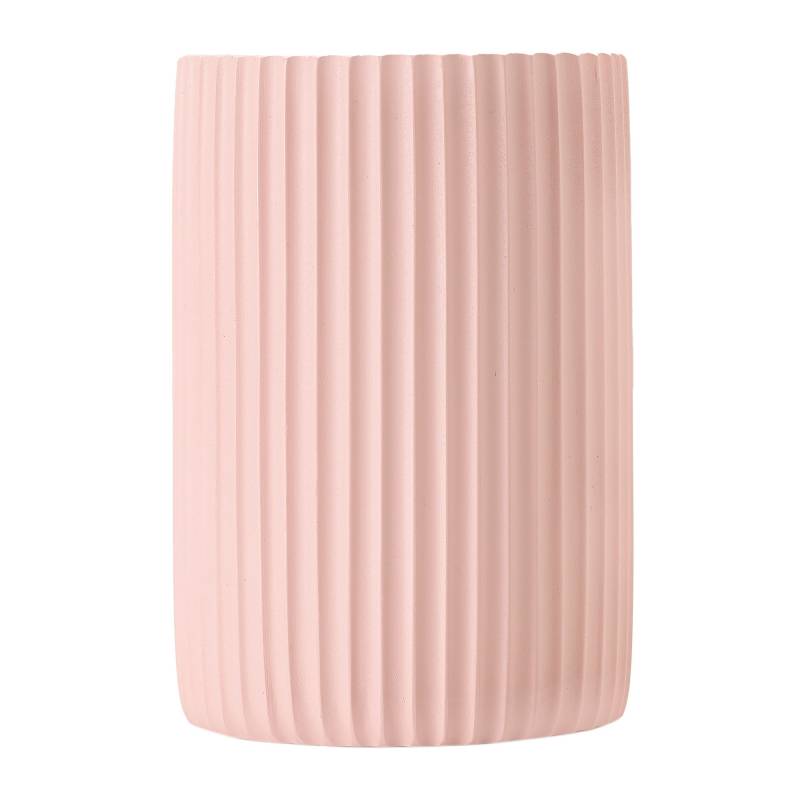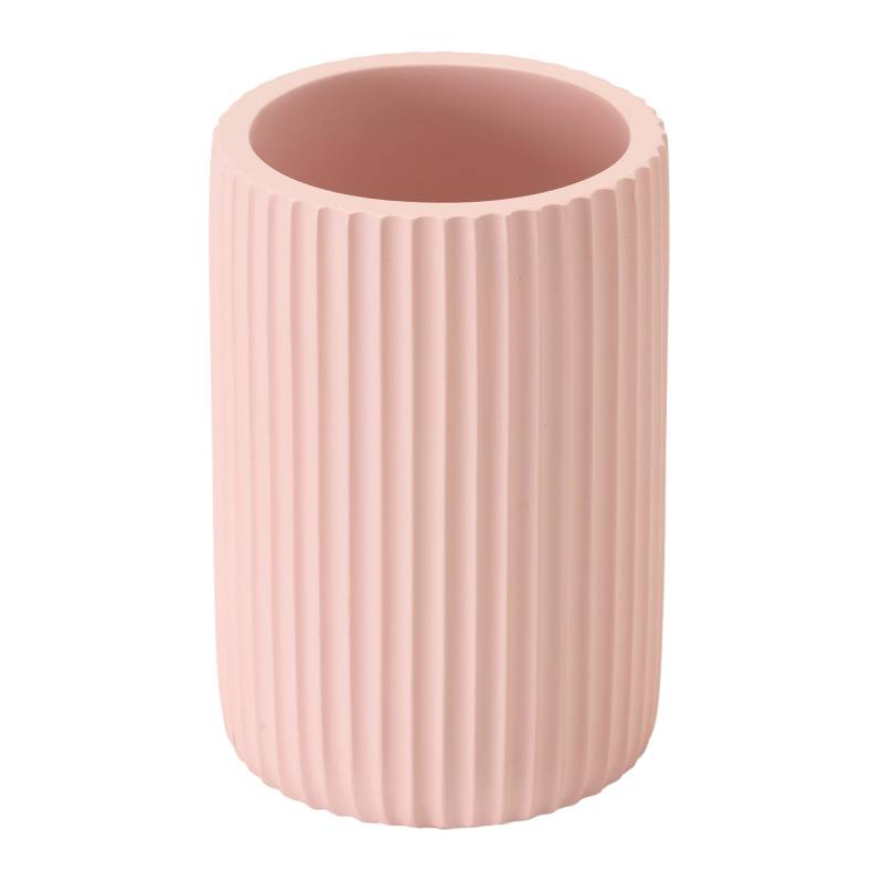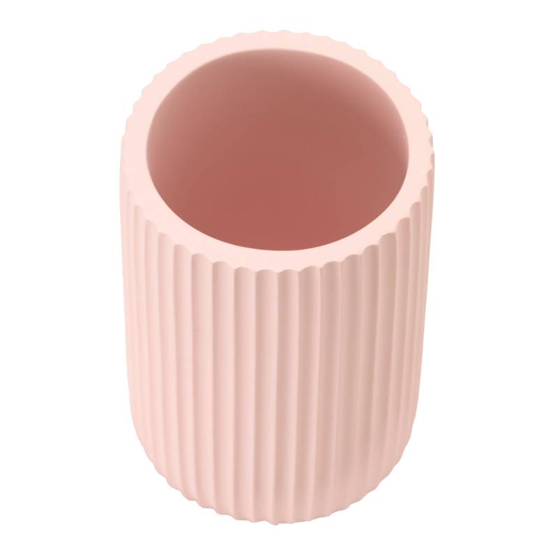 Vaso portacepillos de dientes color rosa. Tienen 9,5cm de alto.
