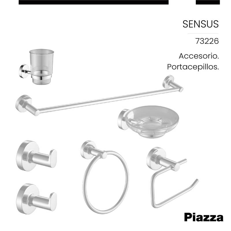 Porta Vaso Baño Piazza Sensus Cromado Set Cepillo de Dientes (73226) Innovación en griferías de alta calidad, diseño y tecnología Incluye elementos de fijación
