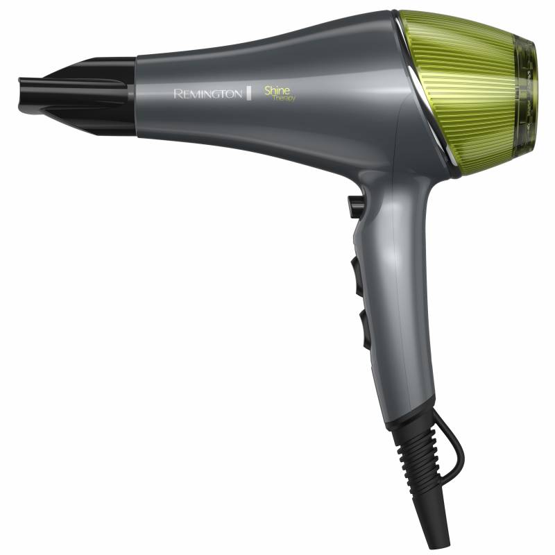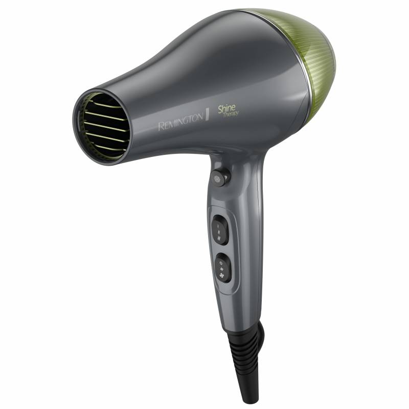 Secar tu cabello dejándolo suave, brillante y libre de frizz mientras lo proteges es muy fácil con el Secador de Motor Profesional Remington Shine Therapy con rejilla recubierta de Cerámica de Aguacate y Macadamia. El generador iónico emite 90% más Iones* que te ayudan a secar el cabello más rápido sin maltratarlo.