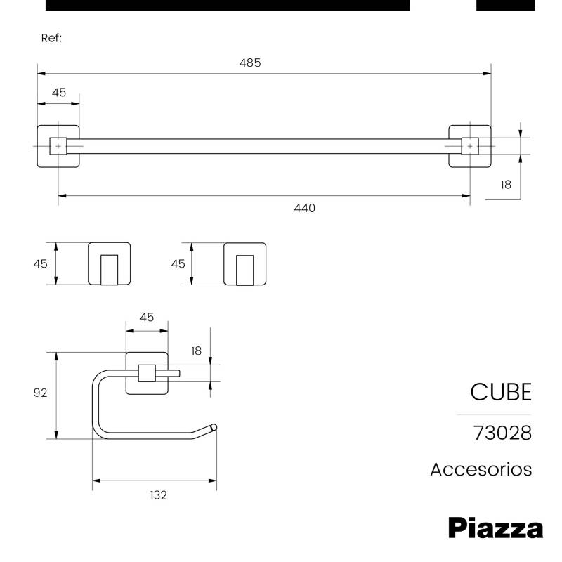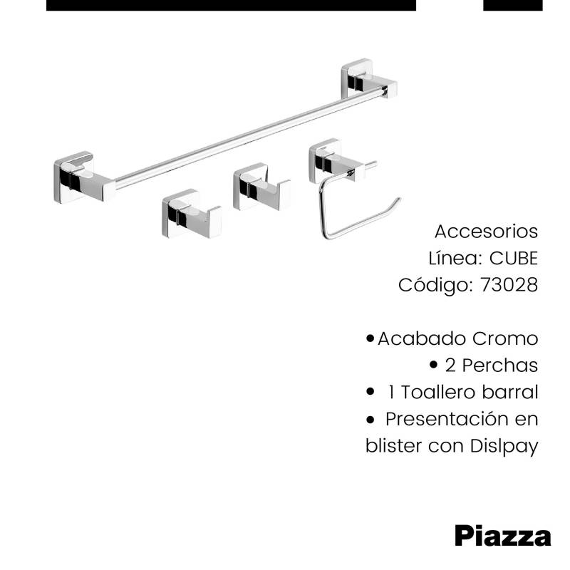 Set Accesorios 4 Piezas Piazza Cube Cromo (73028) Innovación en griferías de alta calidad, diseño y tecnología