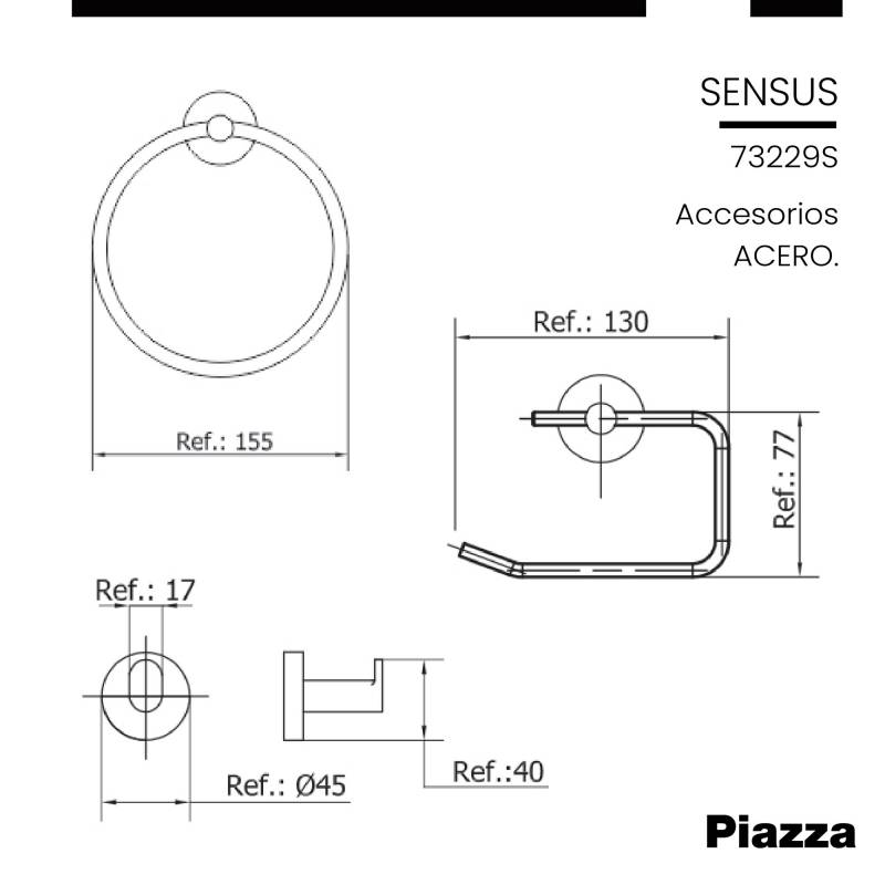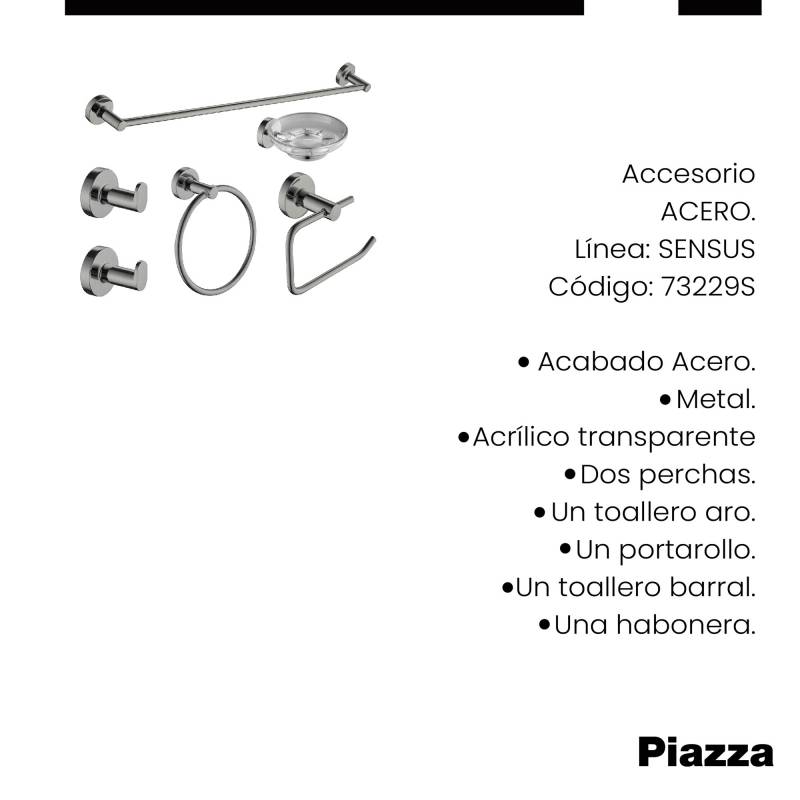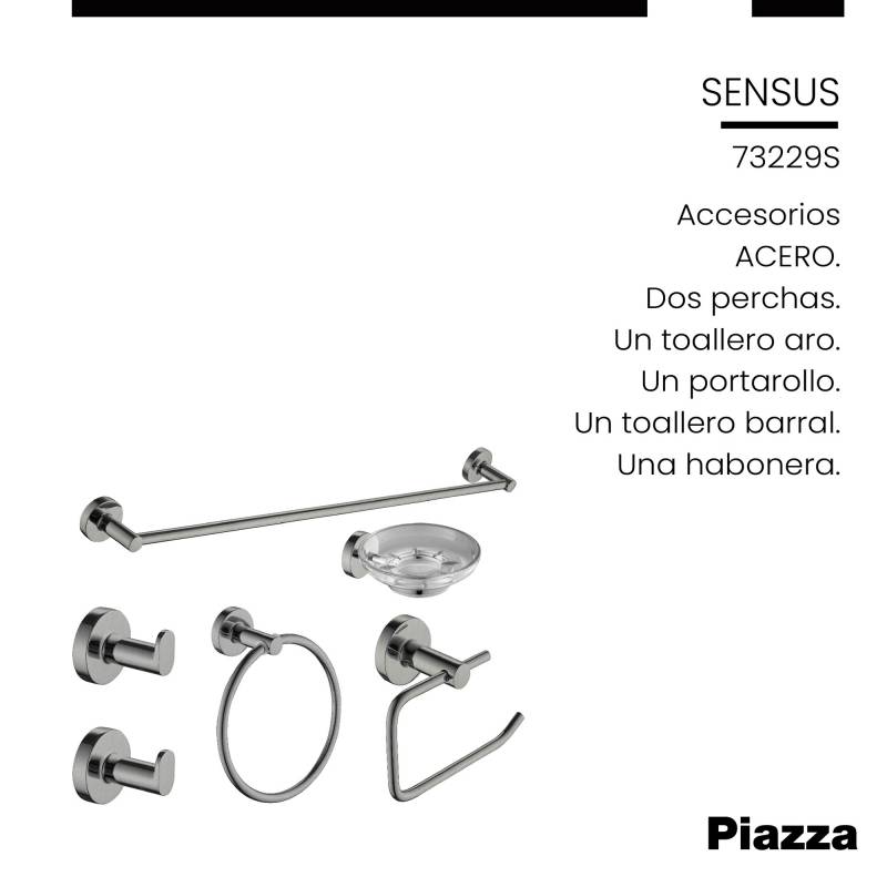 Set Accesorios Sensus Acabado Acero Kit 6 Piezas Piazza (73229S) Innovación en griferías de alta calidad, diseño y tecnología Incluye elementos de fijación
