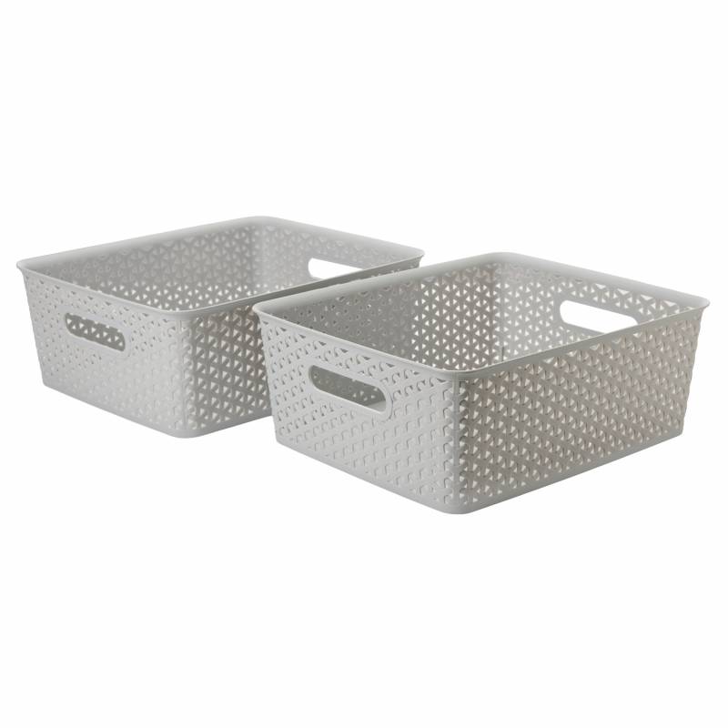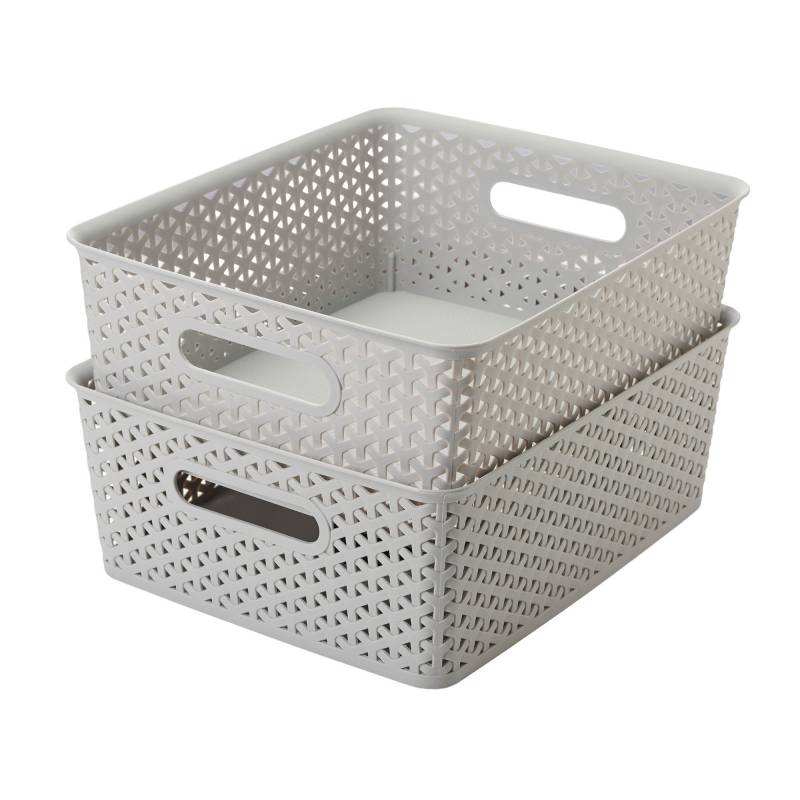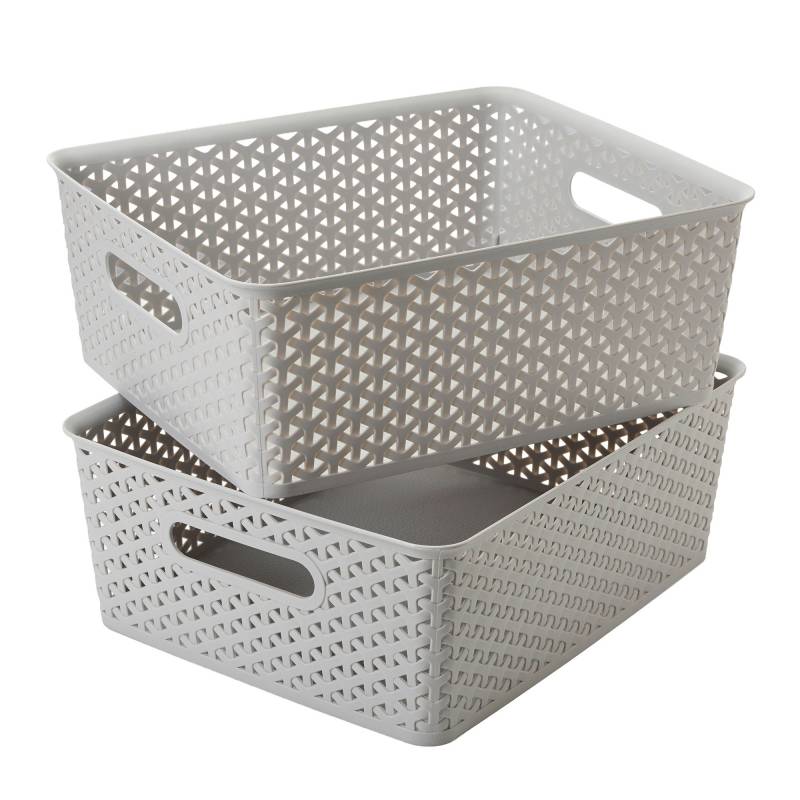 Set de 2 canastos tipo ratán de 12 l, resistentes y estéticos. Ideales para organizar accesorios, baño, cocina o dormitorio. Diseño práctico, liviano y fácil de limpiar.