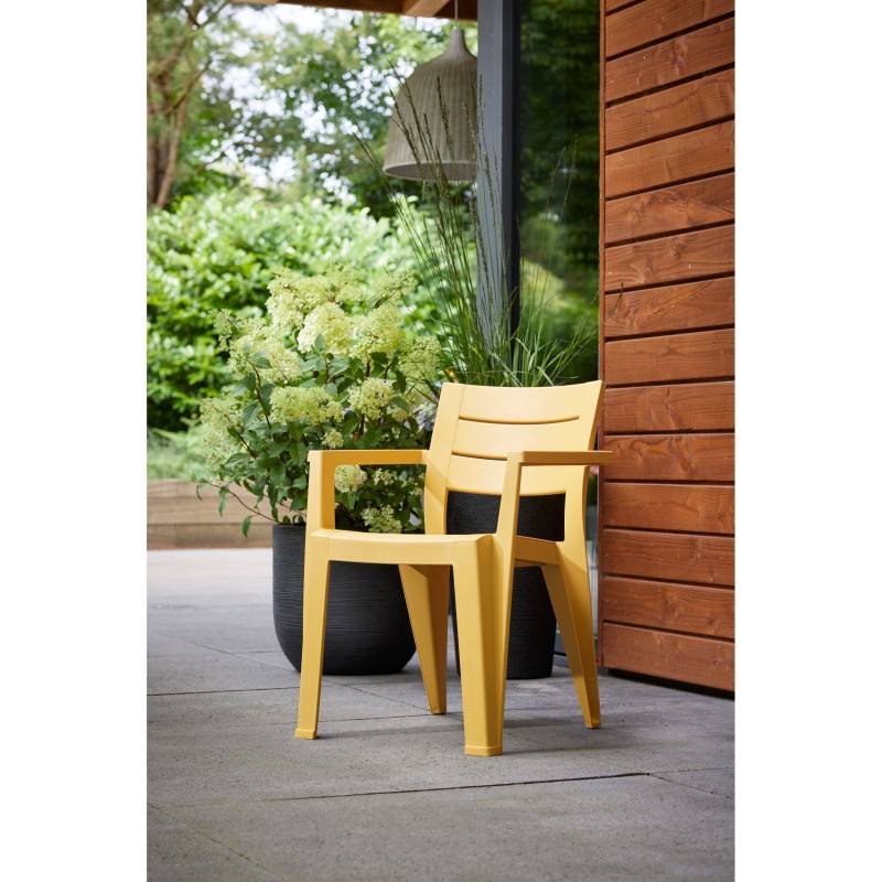 Pase su verano cómodamente en una silla de jardín Julie y disfrute de unos días maravillosos. Con la silla de jardín Julie llevas la sensación de vacaciones a tu patio trasero, para que cada día empiece relajado. Combina las sillas Julie con nuestra Mesa Julie. Esto convertirá su jardín en un lugar valioso, donde hay espacio para largas conversaciones y agradables cenas. Para una noche romántica bajo un cielo estrellado, puede guardar fácilmente las sillas adicionales apilándolas. ¡Disfrutar!