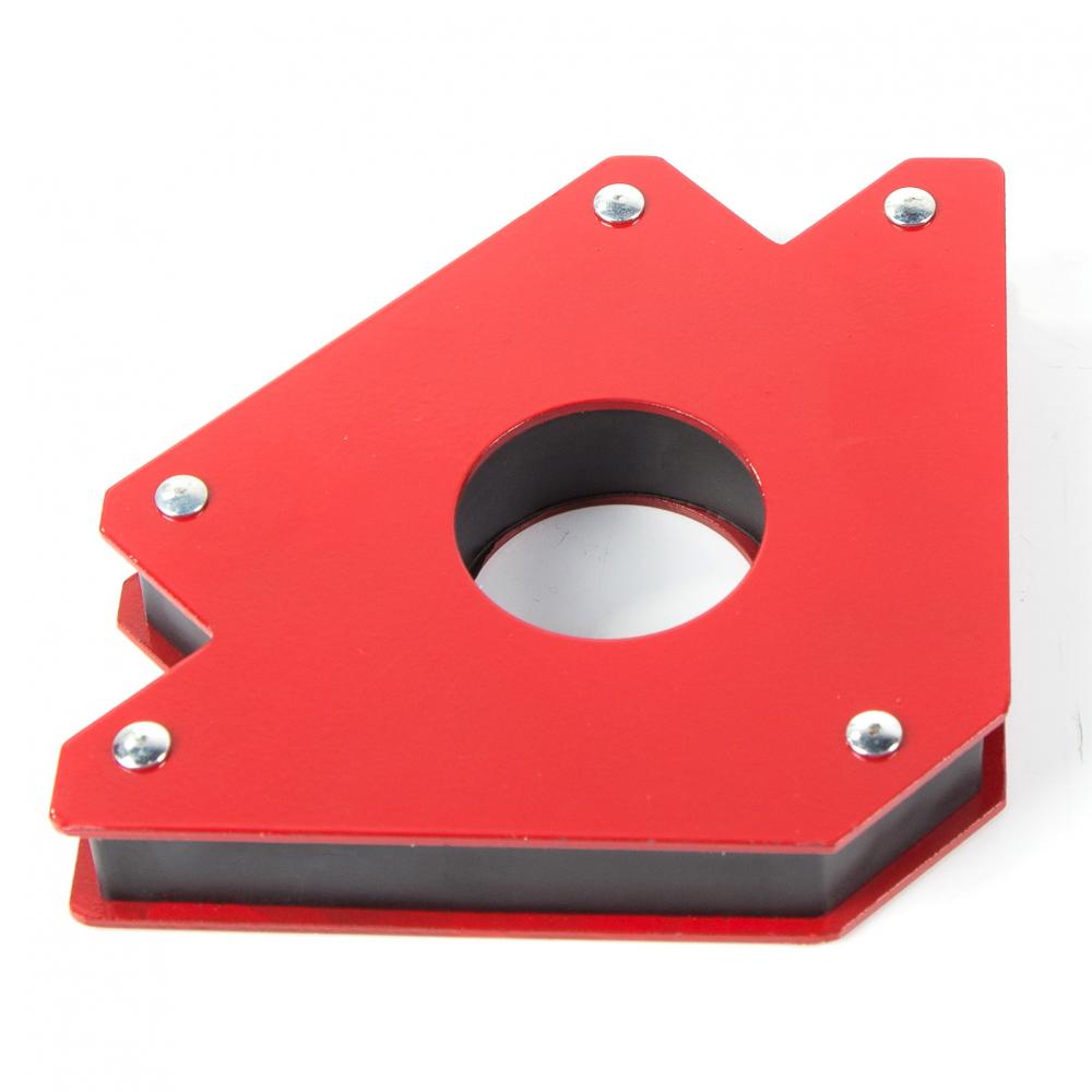 Soporte escuadra magnética. La escuadra magnética ahorra mucho tiempo durante la soldadura de varios perfiles. Puede utilizarla durante la soldadura del material en ángulo de 45, 90 y 135. La fuerza magnética aguantará las piezas soldadas en el ángulo o el plano requerido, lo cual permite que el operario libere las manos para una mayor comodidad. Es una herramienta fácil de usar y de gran ayuda.